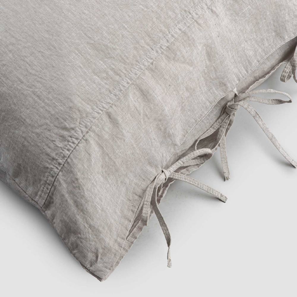 Square pillow case in linen with laces closure, 2 finishes made in Italy.