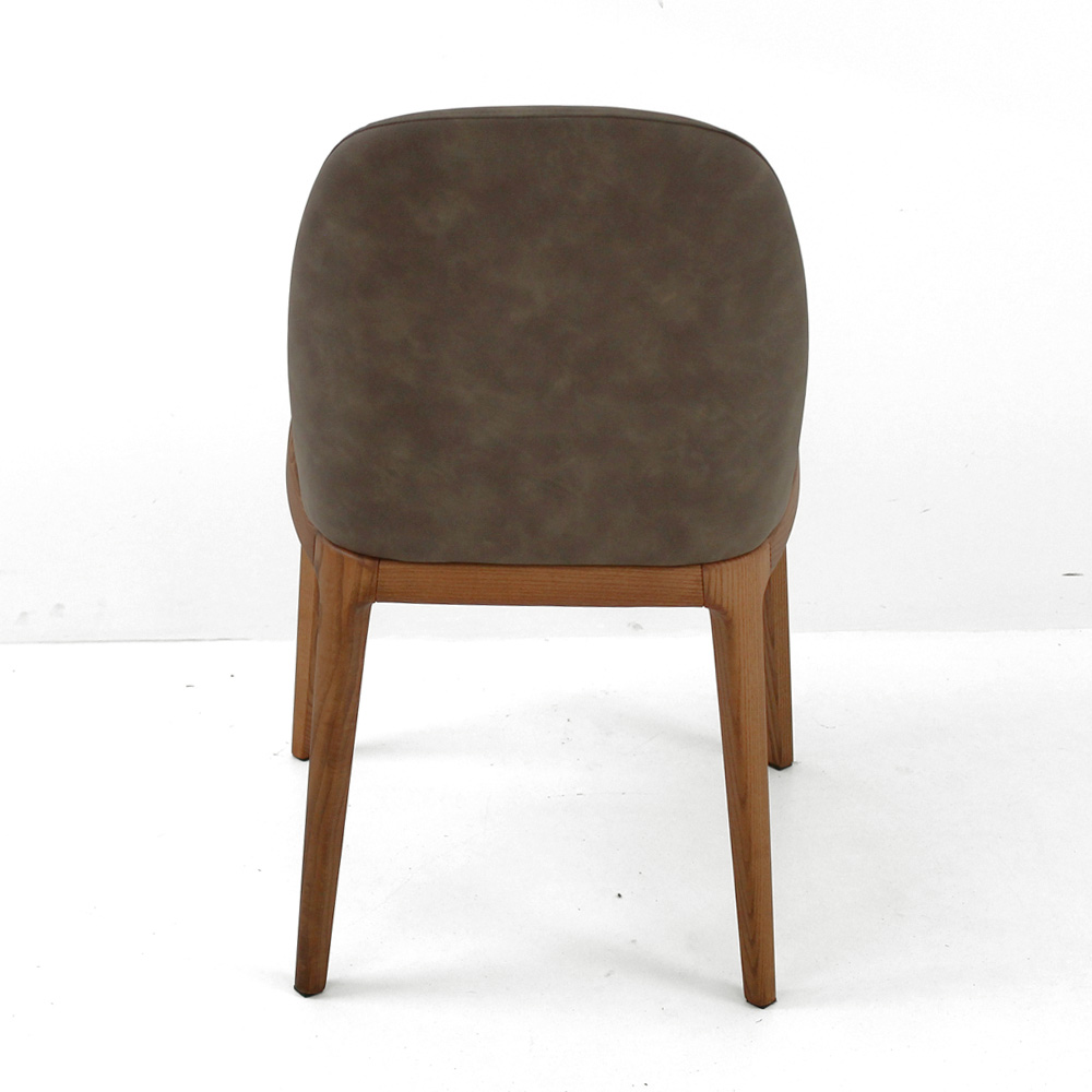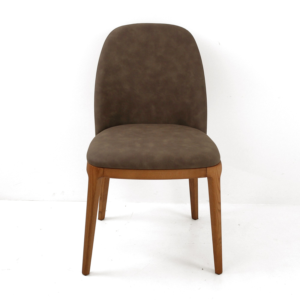 Living room chair entirely made in Italy with structure in frisè walnut-stained ash wood and seat made in rebel faux leatherof leather colour. The chair has a classic and timeless taste and offers a choice of refined seating comfort . Its sinuous and very elegant lines make it suitable for completing the furnishing of any living room, kitchen and dining room, giving the room a refined and unique touch.