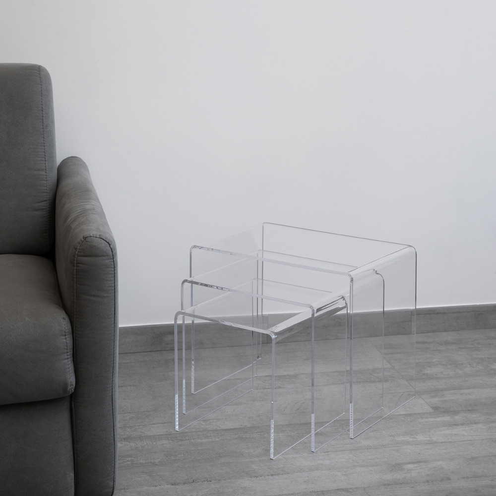 Triptych coffee tables in transparent acrylic crystal, made in Italy.