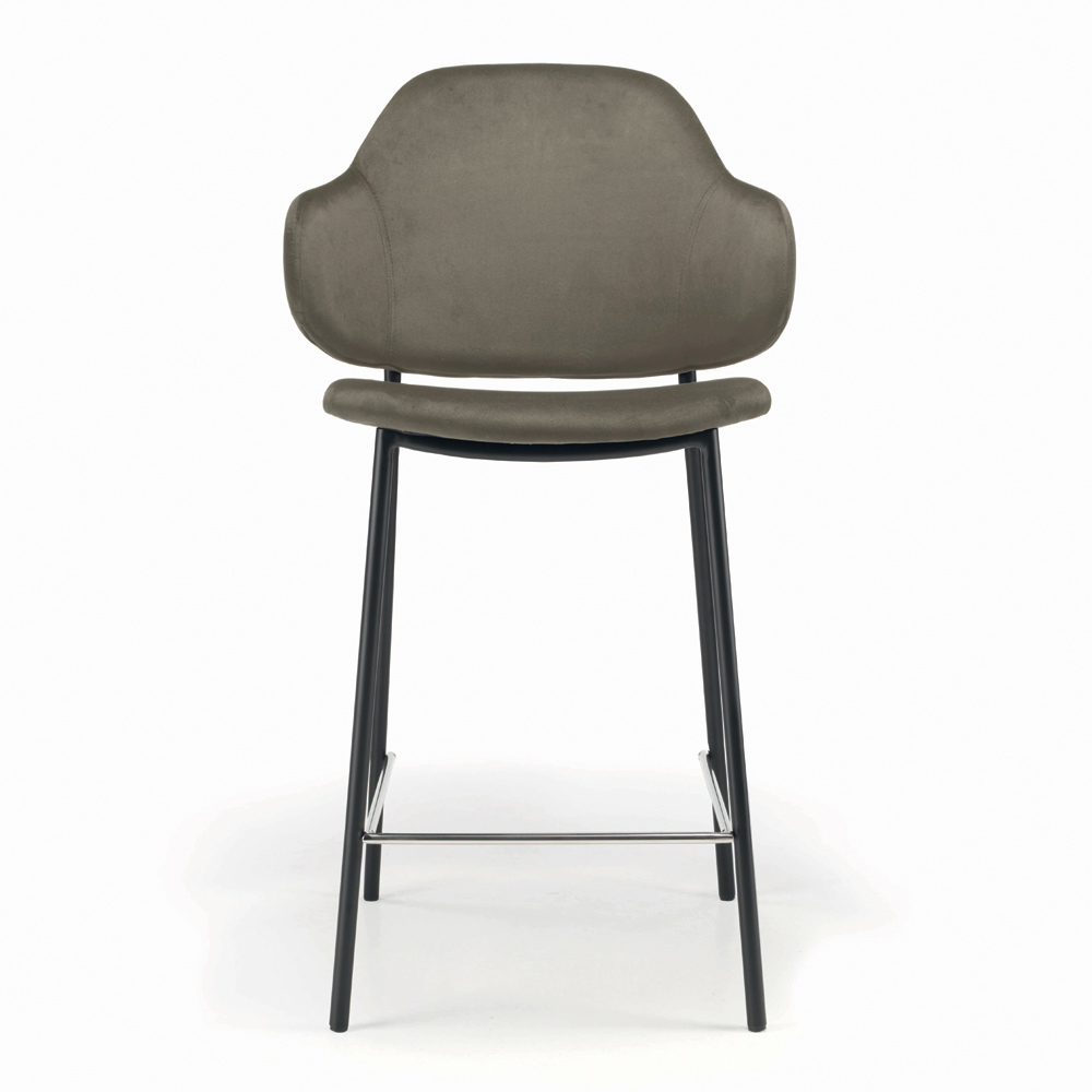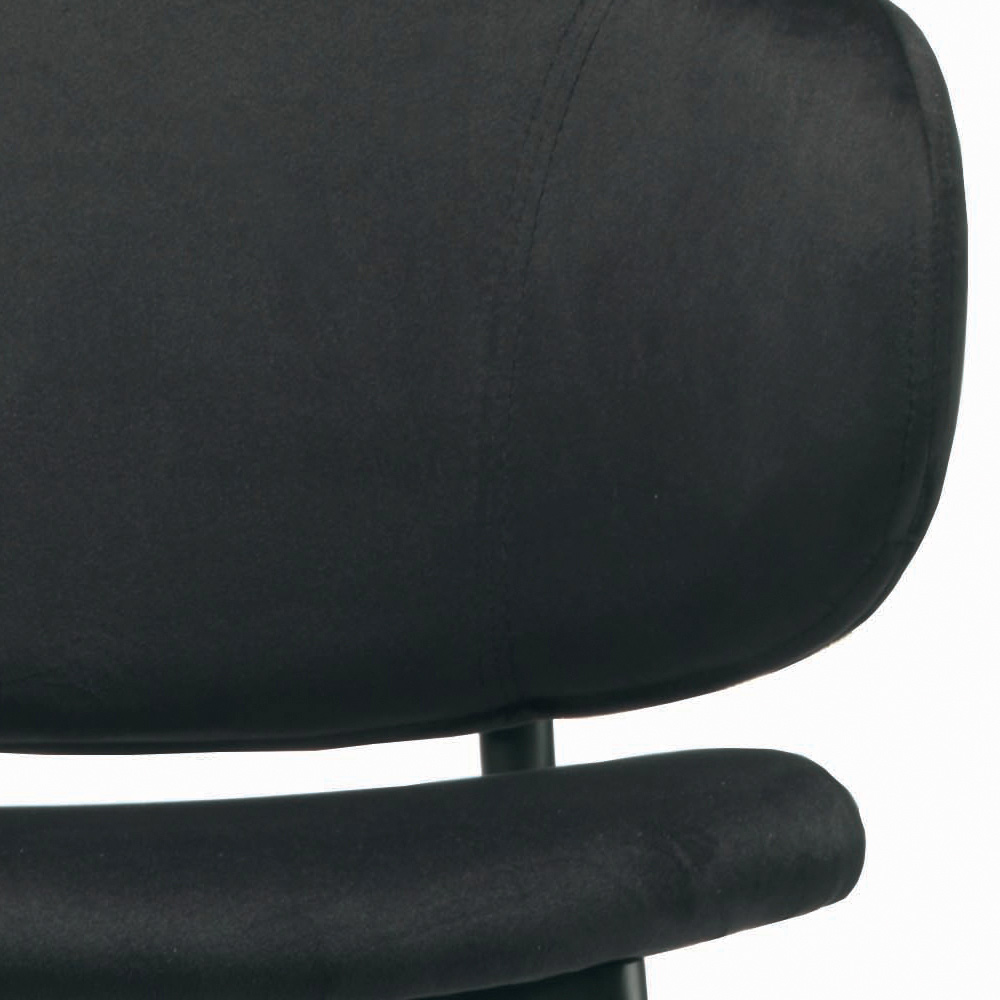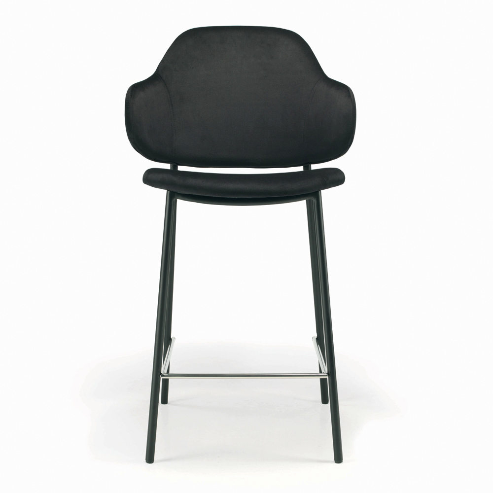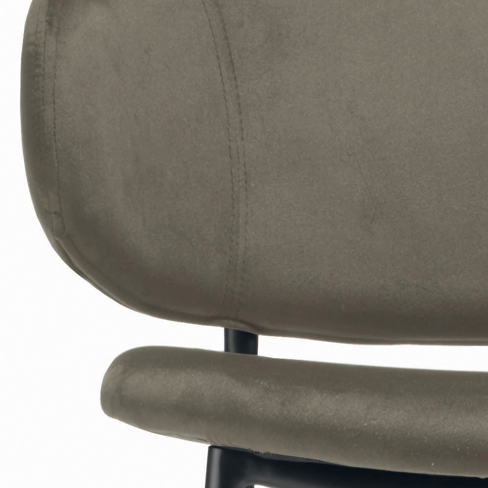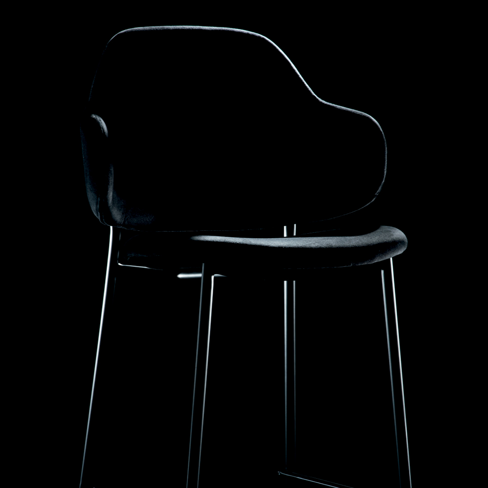 Fixedliving room stool made with seat and backrest in fully covered steel and base in black lacquered steel. The soft and enveloping lines of the seat and backrest are characterized by reassuring shapes. Ideal in the dining room, as well as in the kitchen, it will personalize the environments with design and functionality. It embodies style, quality, design and elegance. Thanks to its sinuous, simple and stylized lines it is suitable for any type of furniture.