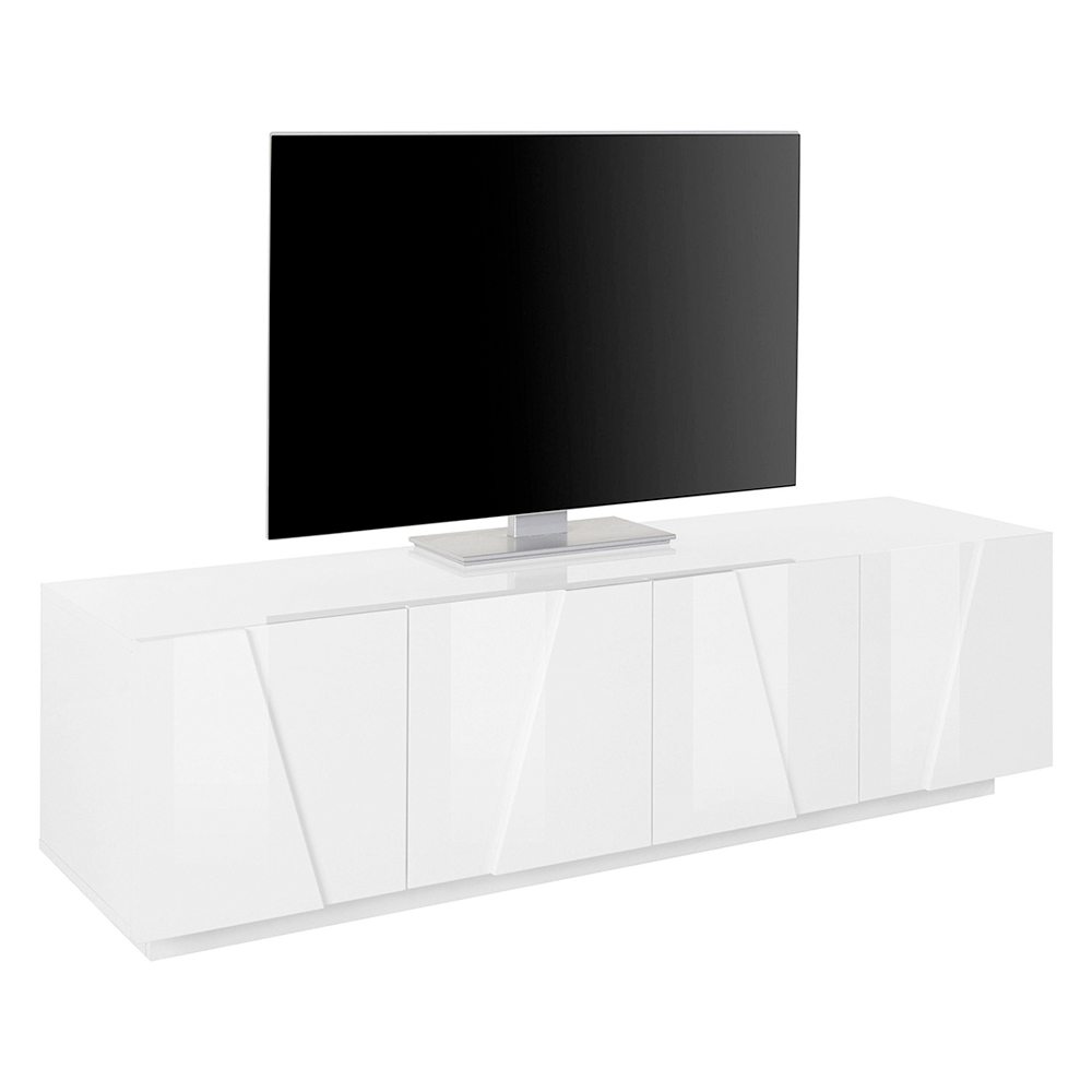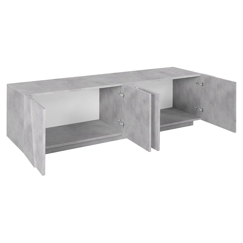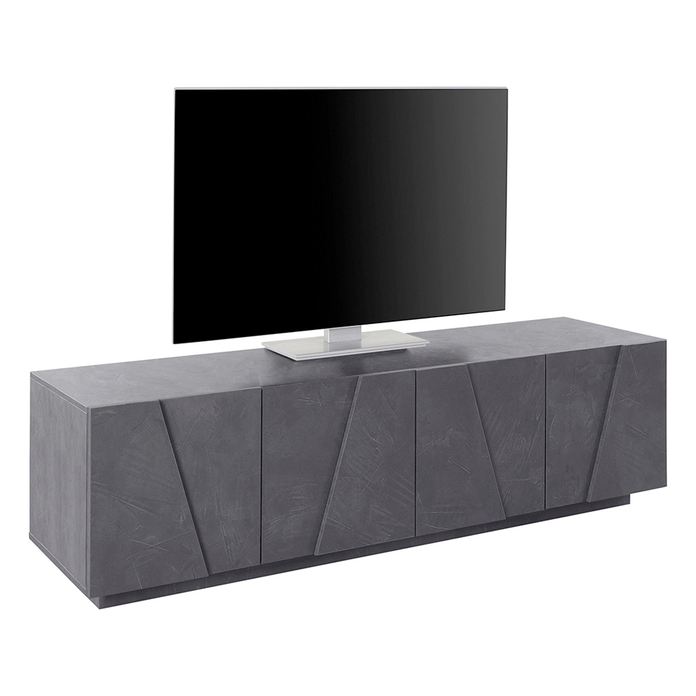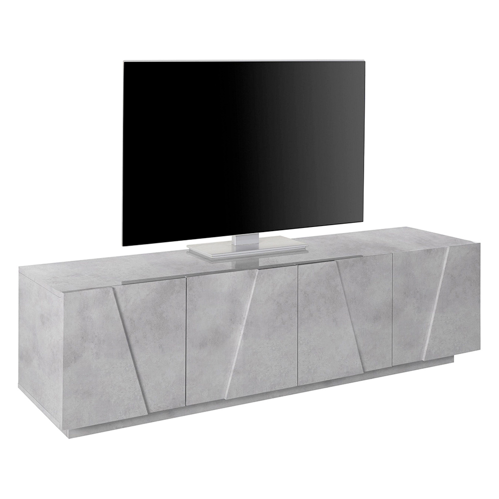 The TV stand is made up of 4 hinged doors made special by the geometric carving in relief on the surface, closing 2 storage compartments , which guarantee large storage space. It is made of melamine and 100% Made in Italy . This product lends itself to completing the decor of any living area thanks to its simple and elegant finishes that give the environment a unique and unforgettable touch. The material used guarantees quality and resistance even over time.