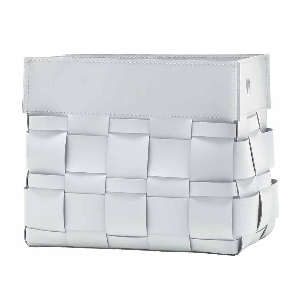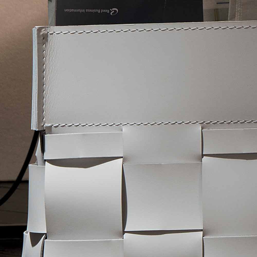 Lory is a 100% made in Italy magazine rack, handmade by skilled artisans expert in leather processing. The regenerated leather used for its realization is of high quality and resistant. The elegant and sober design is studied in detail and is characterized by intertwining leather bands of different widths.