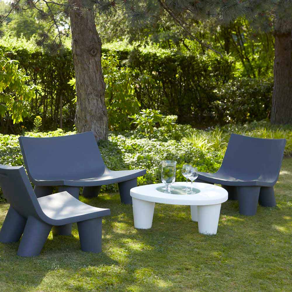 Garden coffee table in glass and polyethylene Slide Low Lita Table, made in Italy Low Lita Table is an ideal coffee table for furnishing both indoor and outdoor environments for a touch of original made in Italy style outside the traditional schemes. Functional and easily transportable, this coffee table furnishes your spaces in a fun and informal way, however presenting itself as a detail capable of making the difference.