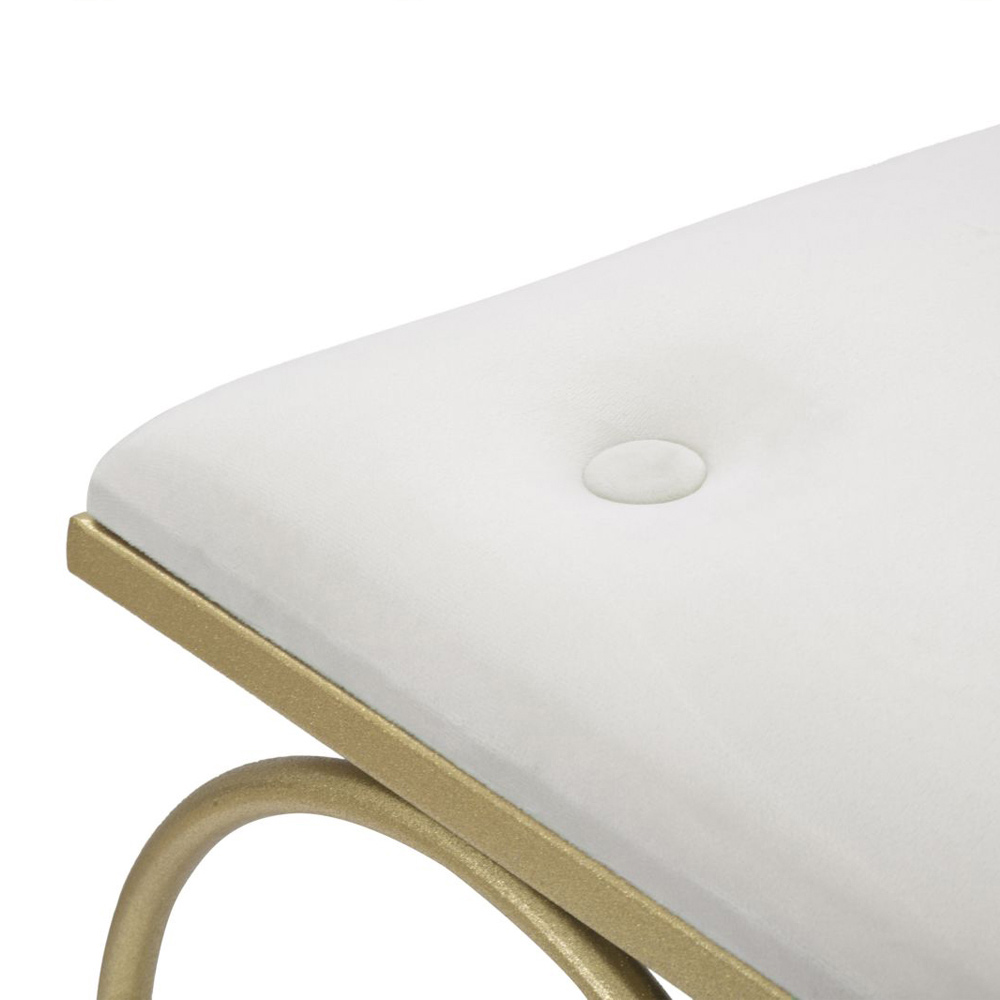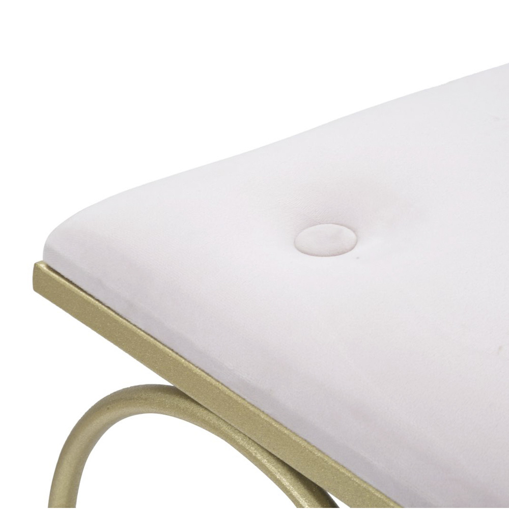 Modern low stool with golden finish iron structure and seat upholstered in sponge and covered in fabric . A piece of furniture with a dreamy soul , characterized by the particular heart shape of the base that enriches the aesthetics making it unique and elegant . The wonderful combination of colors chosen completes the final look making this stool an ideal decorative element for those looking for a romantic style and who love to furnish their home spaces with objects with a strong refined personality .