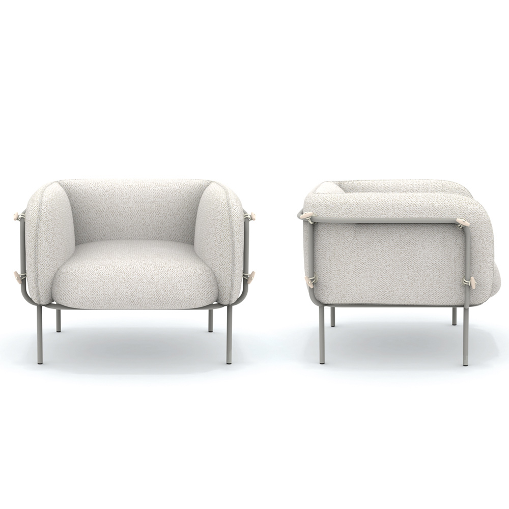 Discover the perfect combination of design and relaxation with this clean-lined garden chair. With its powder-coated galvanized iron frame, this seat adds a touch of minimalist elegance to any outdoor space . The waterproof and UV-resistant fabric envelops soft padding that invites moments of true relaxation. The available fabric finishes blend harmoniously with their surroundings, reflecting the sunlight and helping to create an atmosphere of serenity and style. Placed next to a sparkling pool or in a green corner of the garden, this chair is a promise of long-lasting comfort and beauty that defies time.