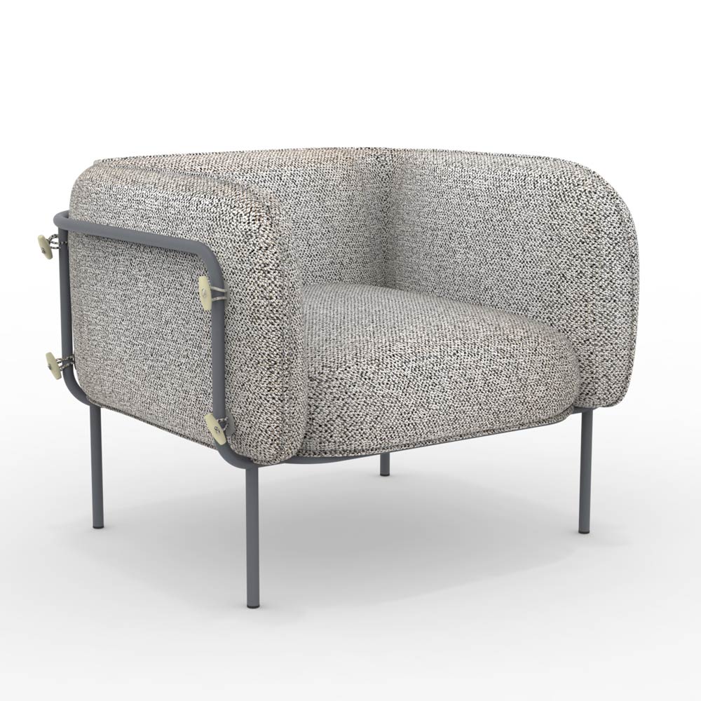 Outdoor armchair made with powder-coated galvanized iron structure and fabric seat , entirely Made in Italy.