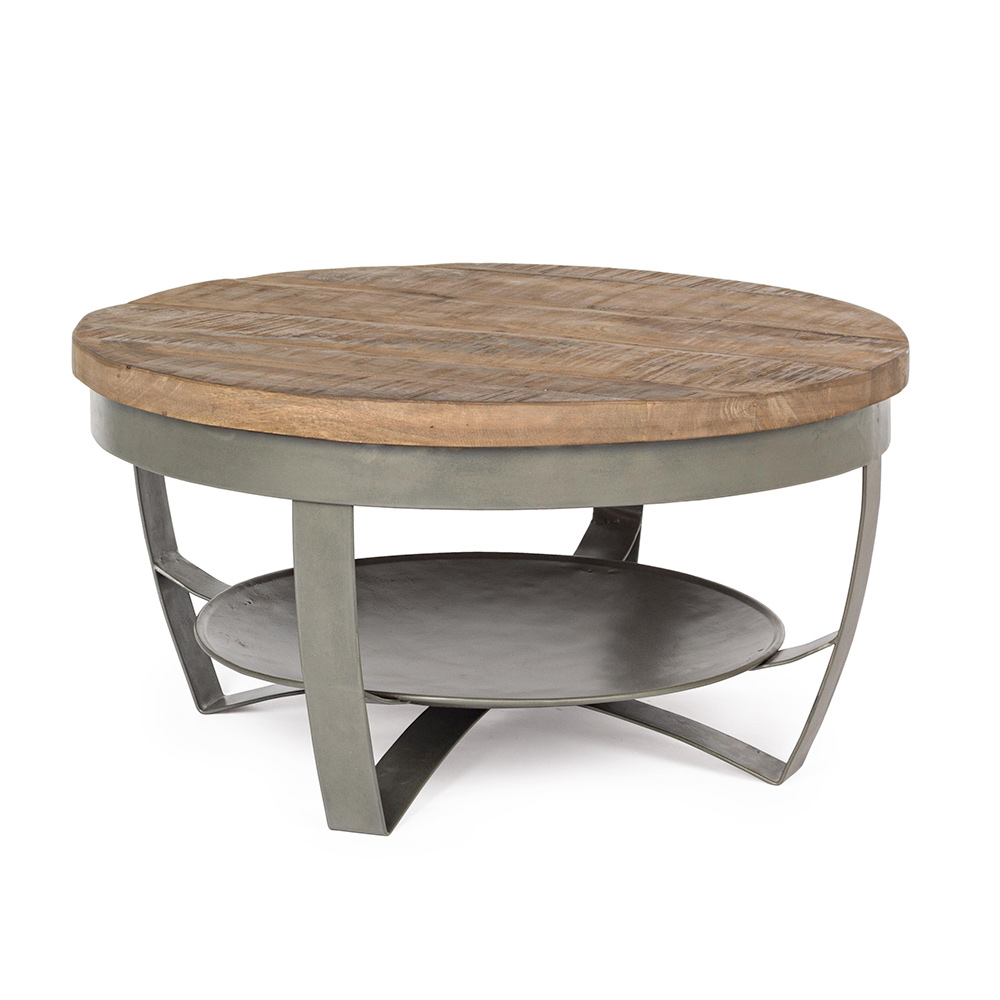 Round coffee table in steel and mango wood of industrial design, 2 sizes.