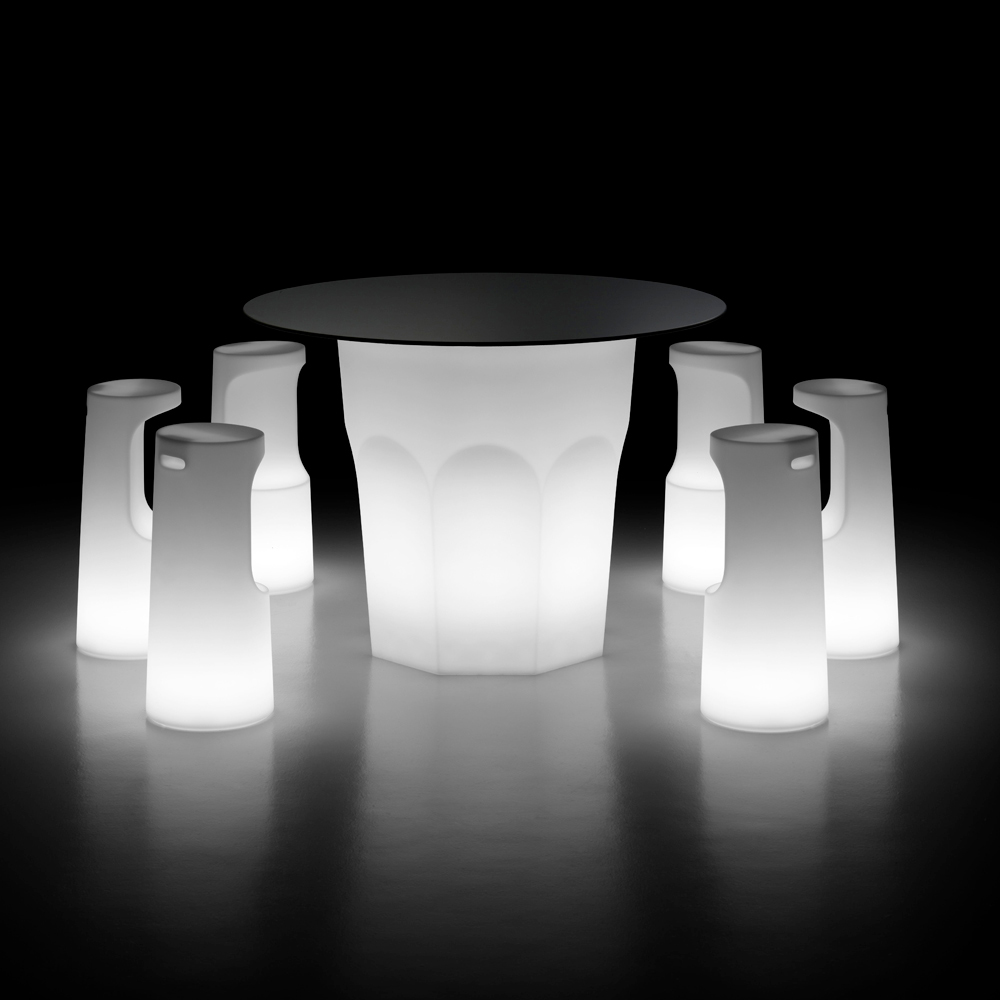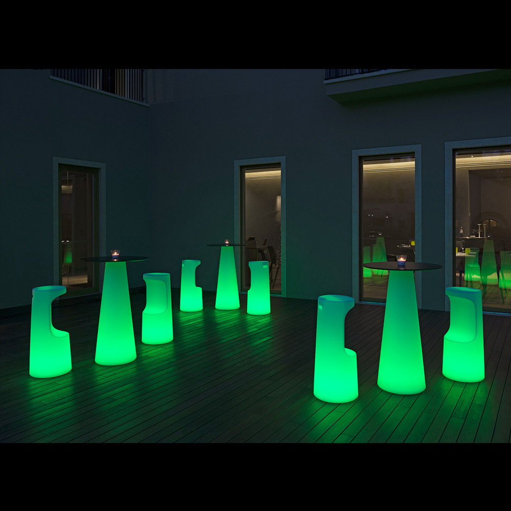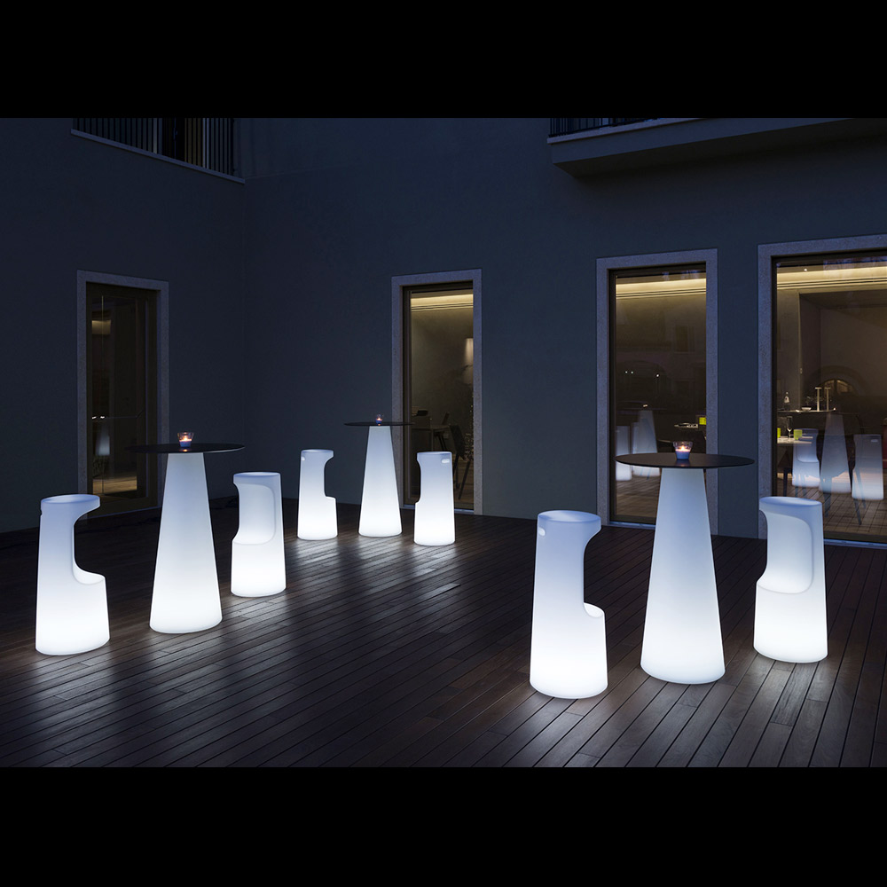 High design stool in polyethylene for outdoor use with LED light, Made in Italy.