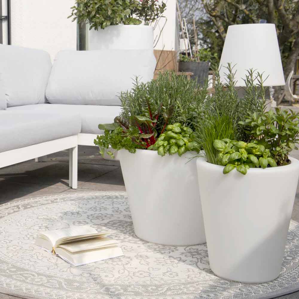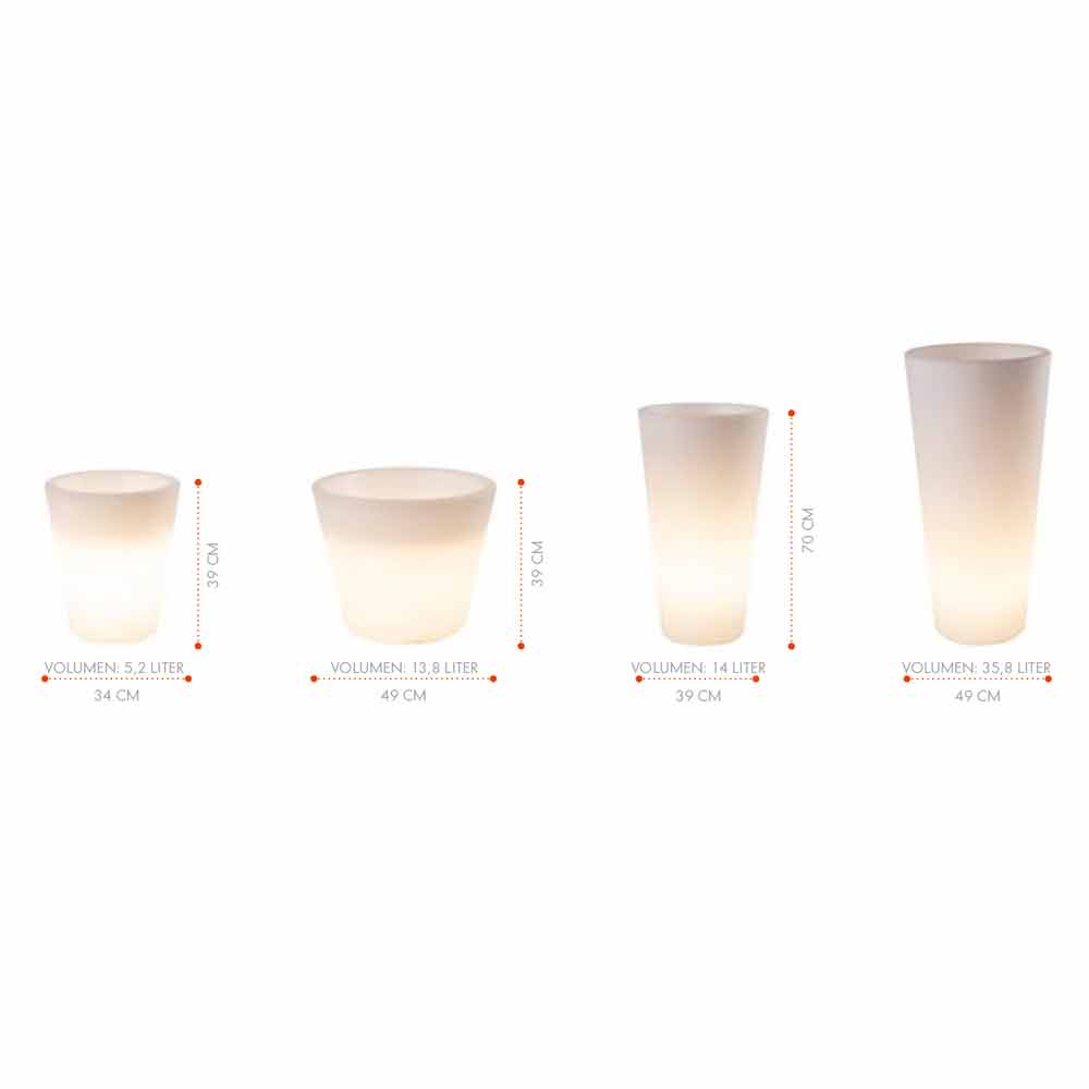 Bright vase for interiors or exteriors of colorful and modern design with E27 connection of different sizes.
