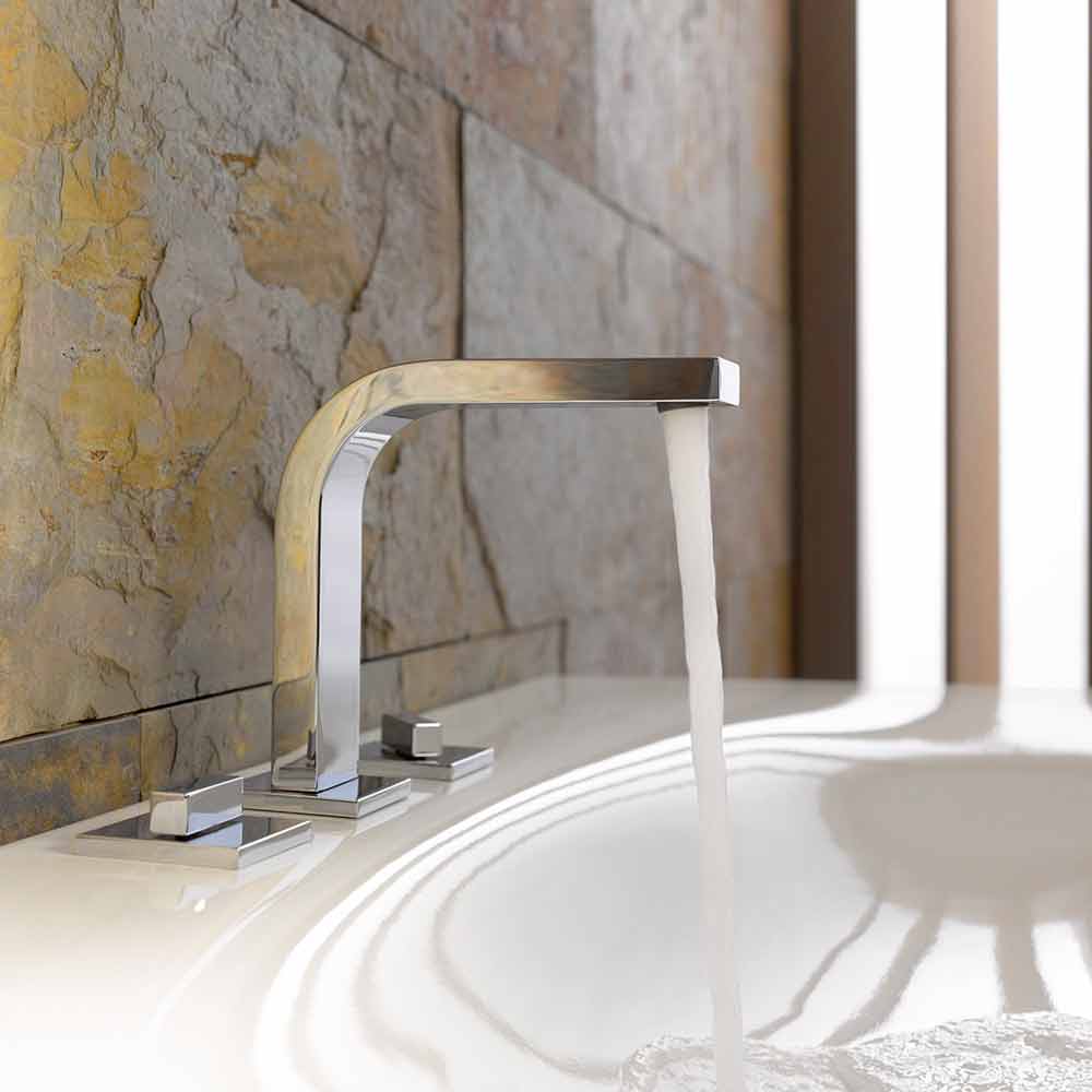 This type of bathroom accessory wins any attention thanks to the perfect combination of design and functional innovation . On the left we find the temperature adjustment while on the right the flow rate adjustment and, once the desired temperature is reached, the handle, if lifted upwards, returns to the initial position thus managing to maintain the temperature adjustment.