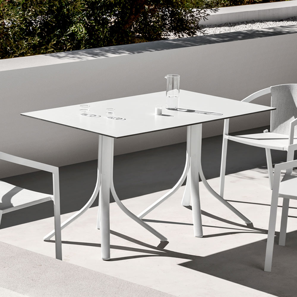 Outdoor table with rectangular design in aluminum and hpl top in 2 finishes, high quality article made in Italy.