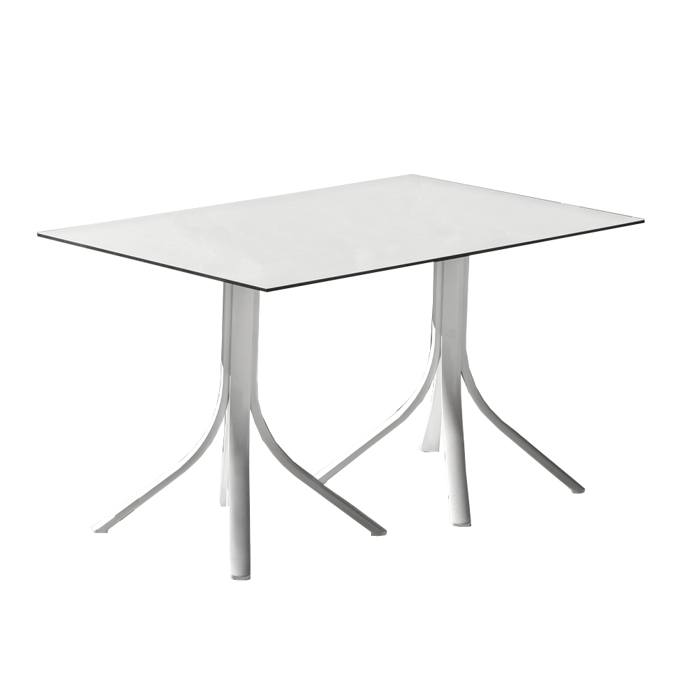 The three-feet, foldable stem is made of epoxy powder coated aluminum, combined with the rectangular top in 10 mm thick HPL laminate.