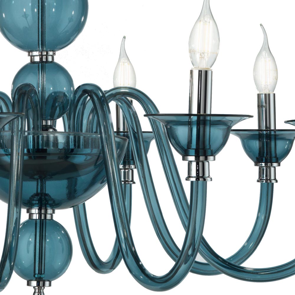 Classic 8-light chandelier in chrome metal and handmade glass, luxury made in Italy.
