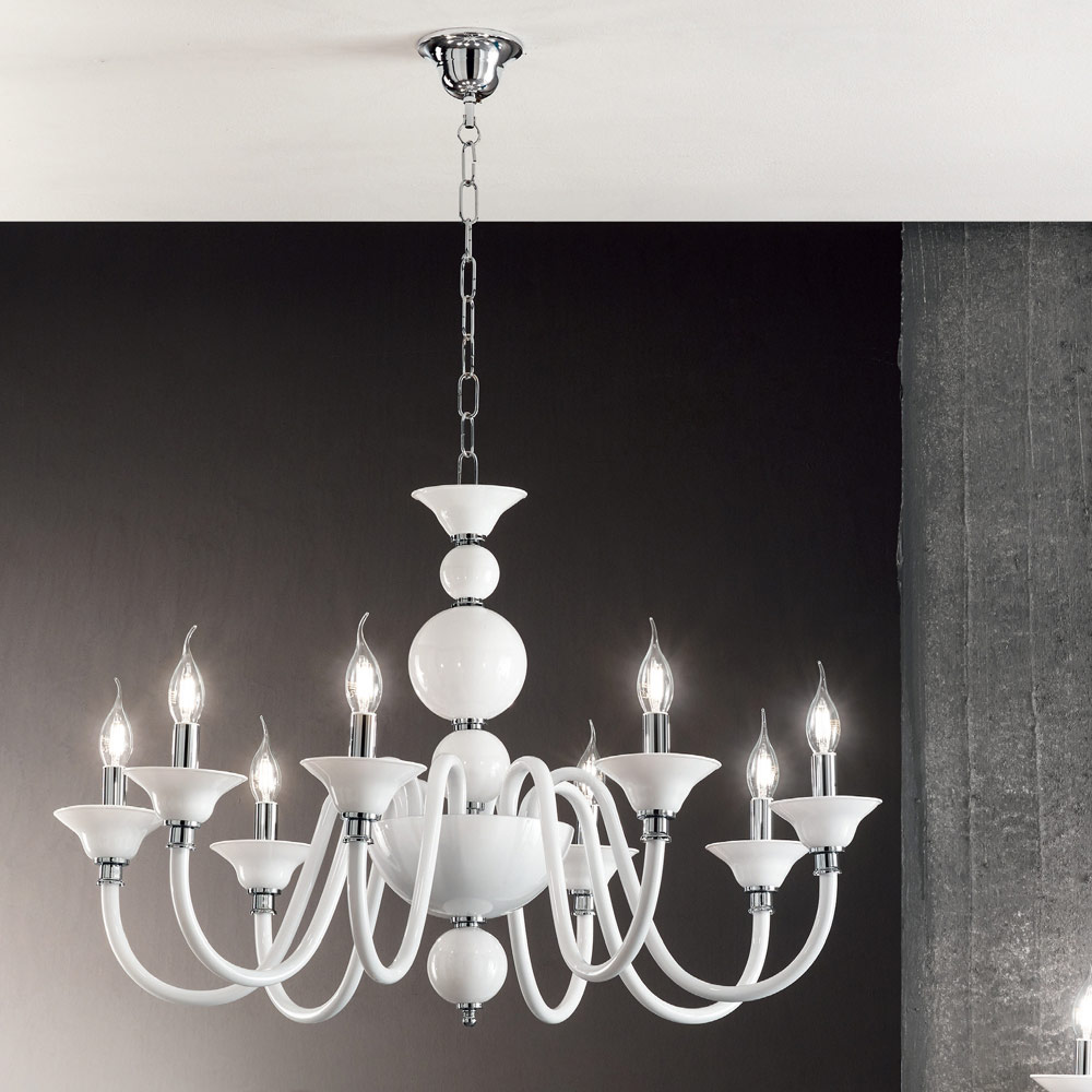 classic and luxurious design is made up of spheres positioned one above the other for the light body, which allow a glimpse of the chrome metal core, and from 8 arched arms, completely made of