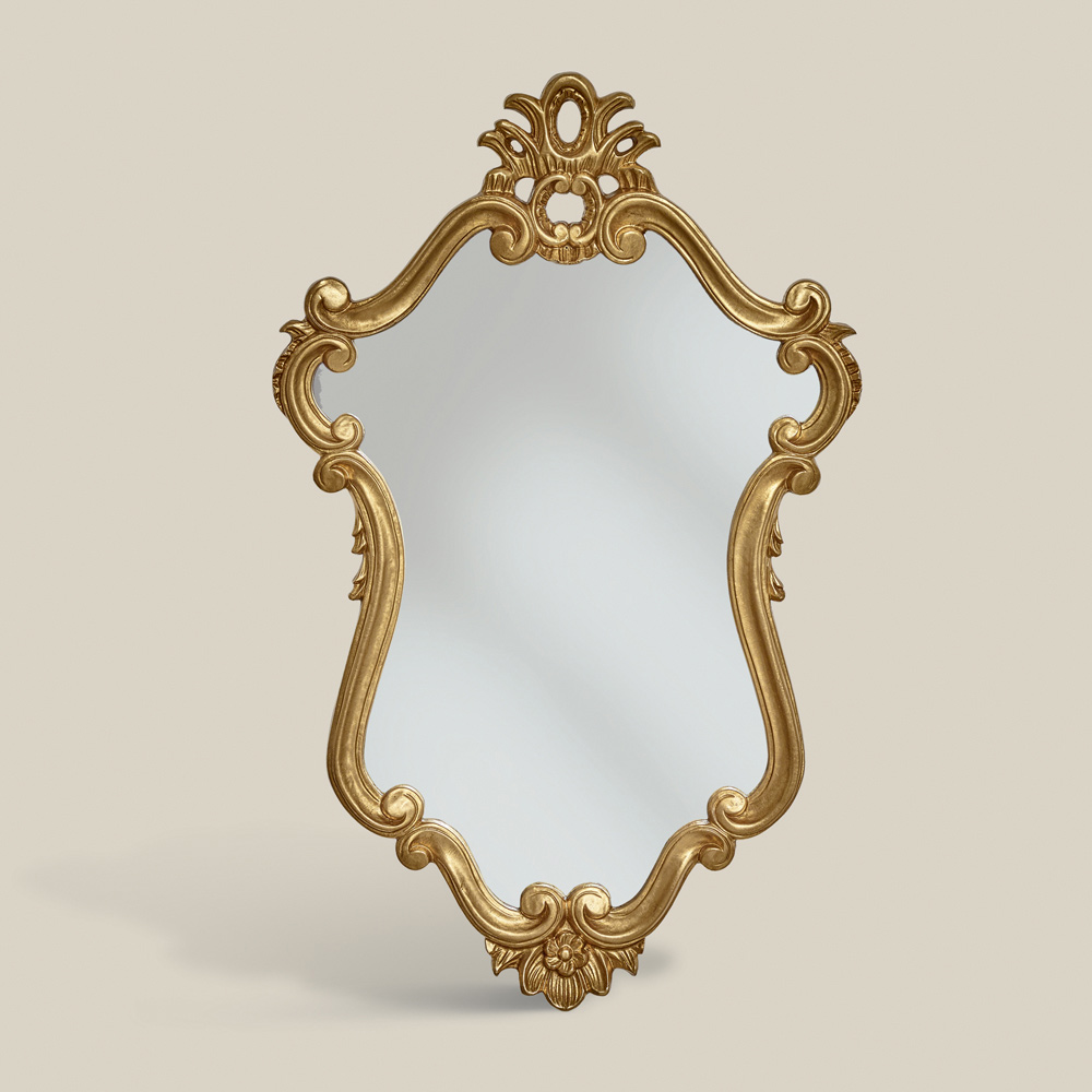 Elegant mirror with a classic and baroque style characterized by a shaped frame finished with refined gold leaf , ideal for decorating any environment with personality and originality. A unique and refined complement, completely made in Italy by skilled master craftsmen , masters of art who finish each complement with wisdom and taste for elegance. The production is carried out using fine materials , and performing the workbyhand with the utmost care and professionalism that distinguishes Made in Italy products.