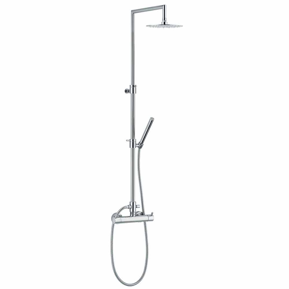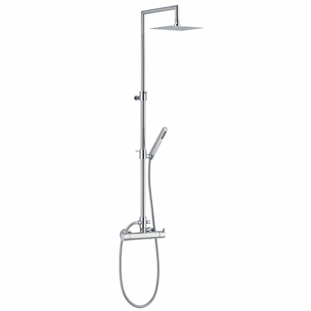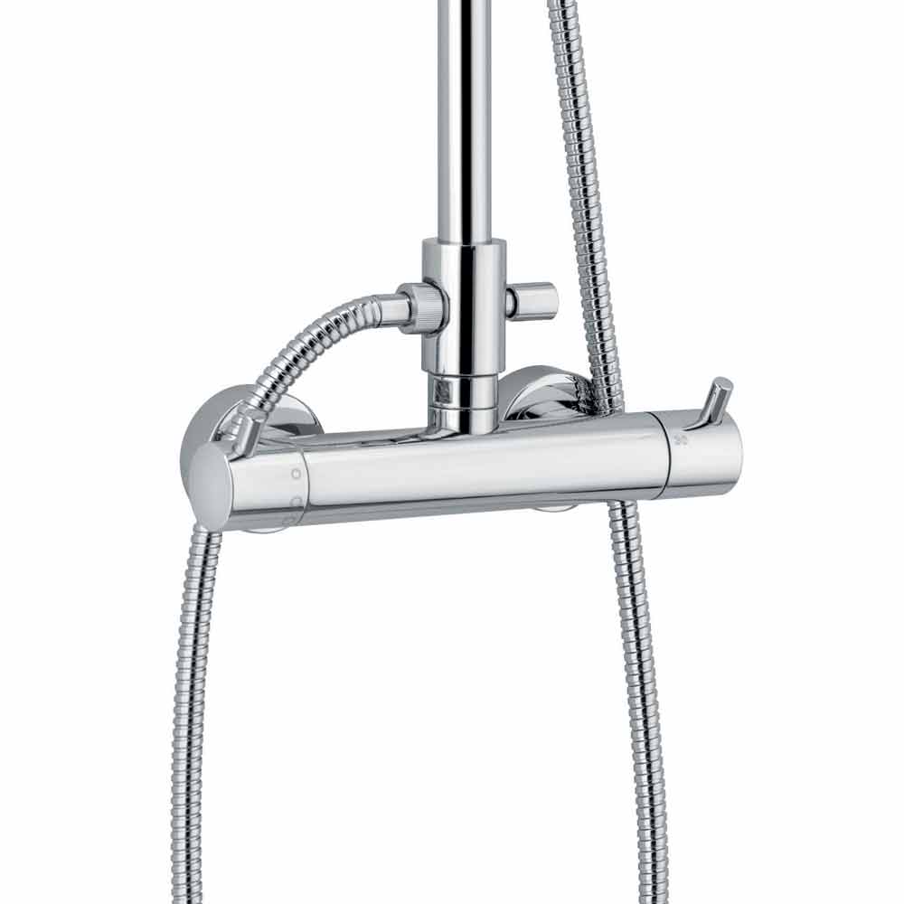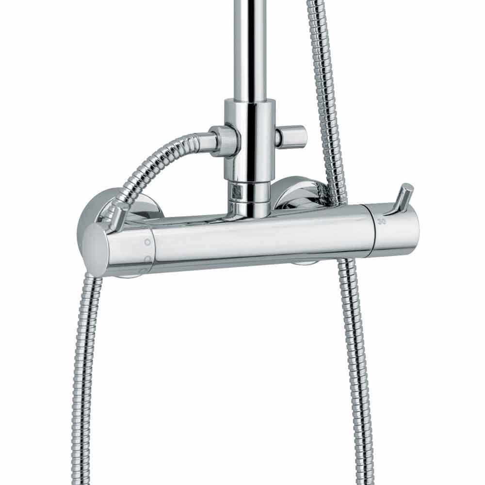 Shower column with thermostatic mixer made of chromed brass with accessories in stainless steel and ABS .