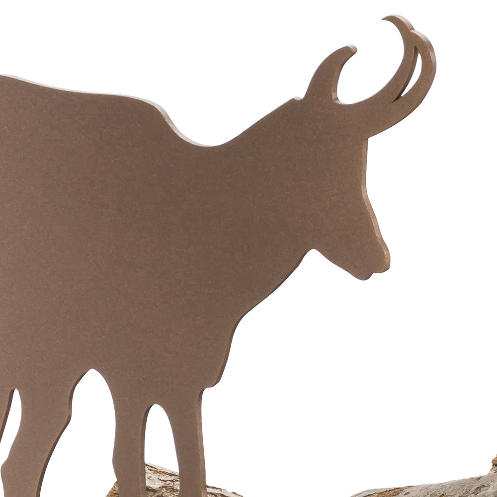 Modern design log holder in brown steel with ibex-shaped decoration with accessories, made in Italy.