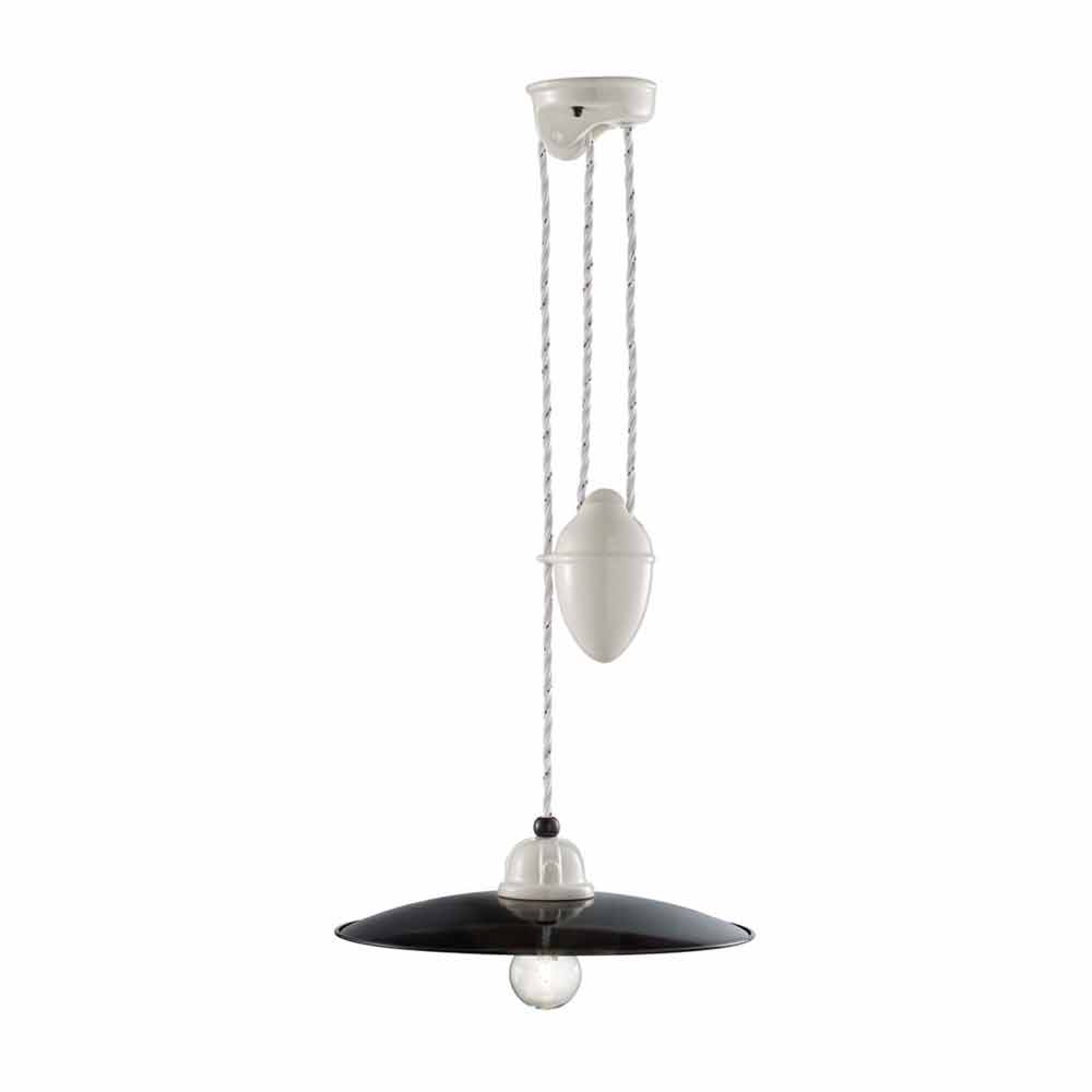 Melissa Ferroluce handcrafted ceramic up and down lamp Melissa is a fantastic up and down suspension lamp, handmade by skilled artisans in Italy. Lamp made of glossy black ceramic, as regards the external finish of the diffuser, while the structure, frame and wire have a glossy white finish. Melissa is available in different sizes. Peculiarity of this beautiful lamp is contained in its shape and design. Equipped with a unique and original style, Melissa brings with it a revisited vintage-industrial style, and is able to adapt to any furniture, from the simplest and most minimal, to the most classic, creating a delicate contrast, all this is possible thanks to the its simple, linear and unadorned surfaces. Another peculiarity of this beautiful suspension is dictated by the possibility of adjusting the height at will, thanks to the vertical sliding of the counterweight. Clear colors and glossy surfaces determine the profile of this fantastic suspension. Melissa has a current design, while retaining the memory of a past style. Bring a touch of design into your home too and choose the size that suits you best!