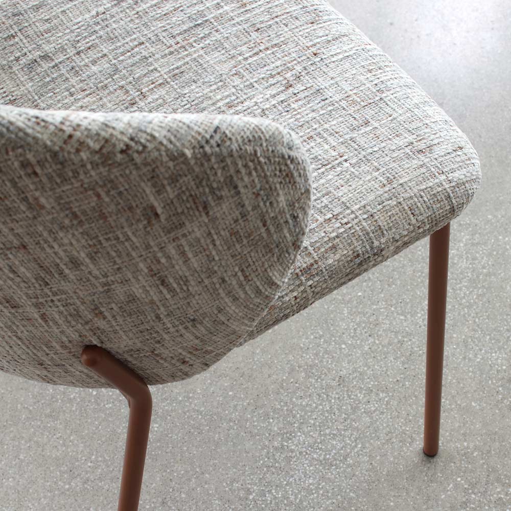 Living room armchair made with powder-coated metal legs, seat covered in fabric and matching stitching , entirely Made in Italy. Armchair with a modern design, defined by soft lines that guarantee comfort and versatility. It is characterized by a covering available in numerous color and material variations, which allow it to adapt to different furnishing styles. The powder-coated metal legs support an upholstered body, with matching stitching that contributes to the clean and elegant design of the product. This collection is ideal for those looking for furnishing elements with a contemporary design that do not compromise comfort.