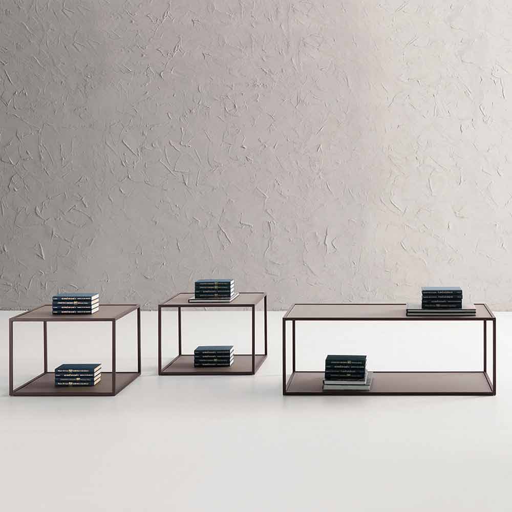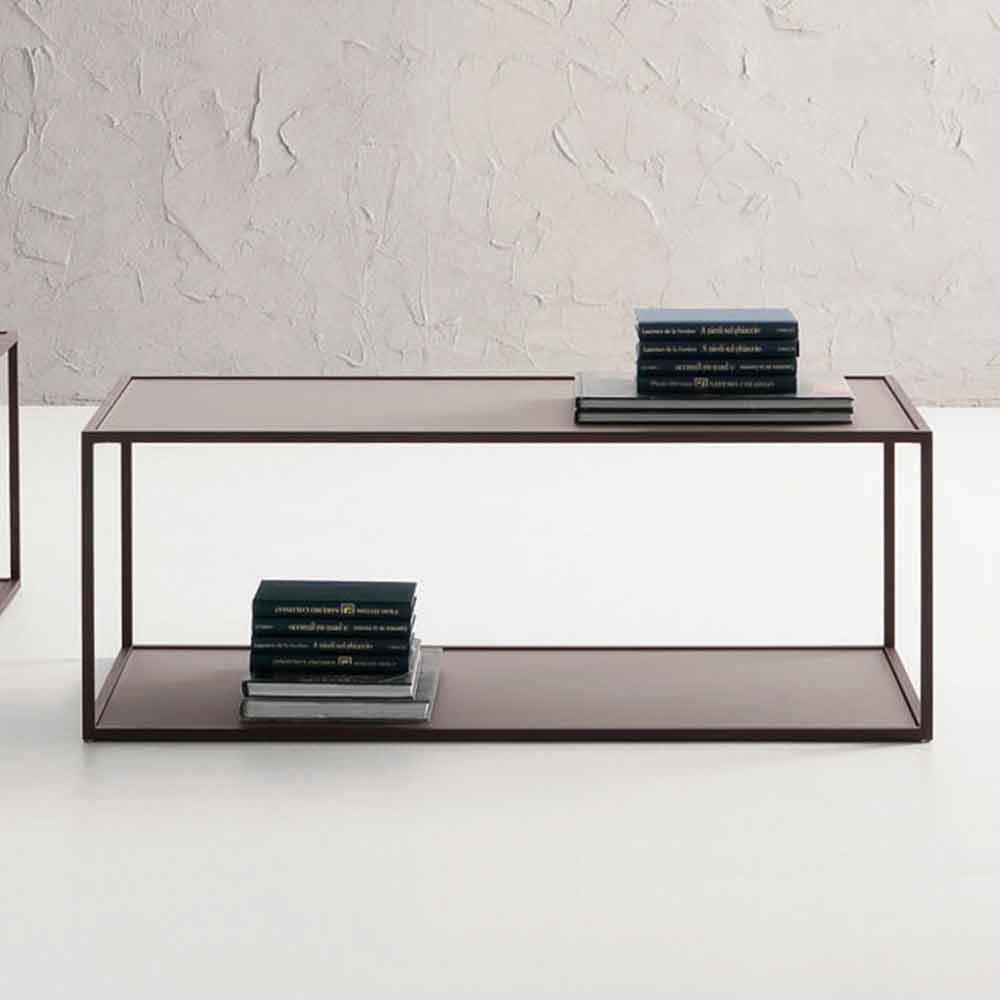 Coffee table made in Italy with graphite finish painted metal structure and double top in anti-fingerprint satin glass with mud finish. A product whose idea is based on simplicity and essentiality to give life to a piece of furniture with a modern and versatile style capable of adapting to any living room, bringing with it an innovative and elegant touch. The particular conformation of the structure allows to obtain a double support surface thus offering the possibility of organizing various useful objects such as books, magazines or remote controls but also simple decorative elements that enrich the design and increase its value by emphasizing it. the exclusive aesthetics .