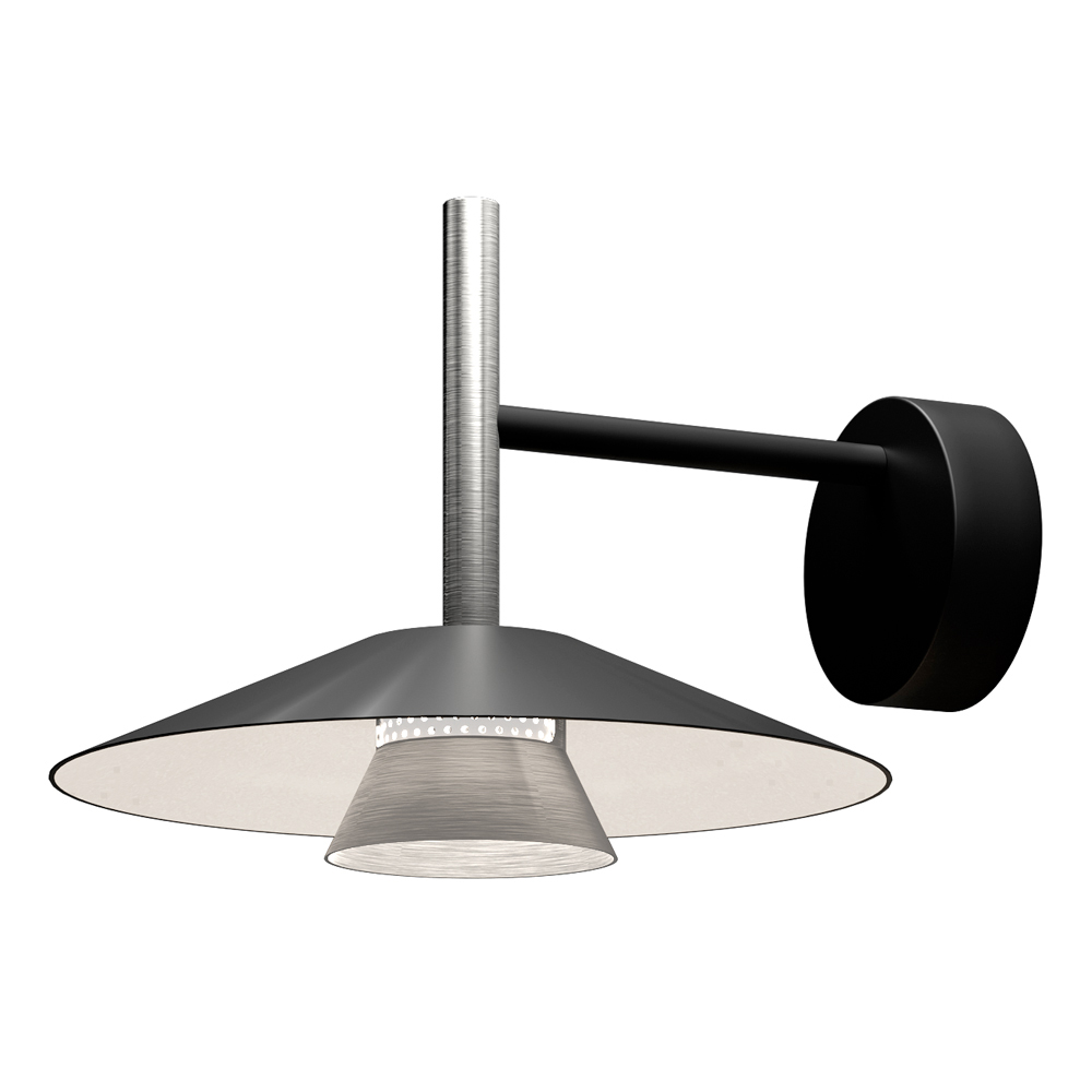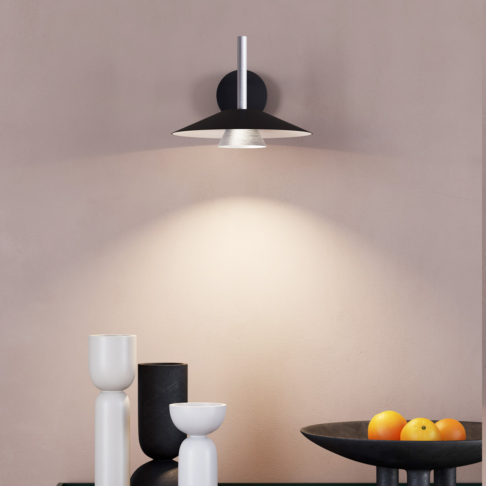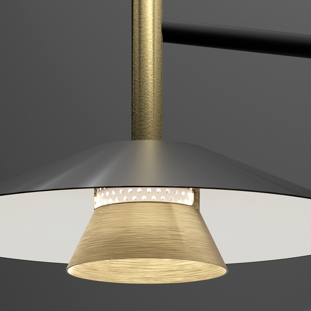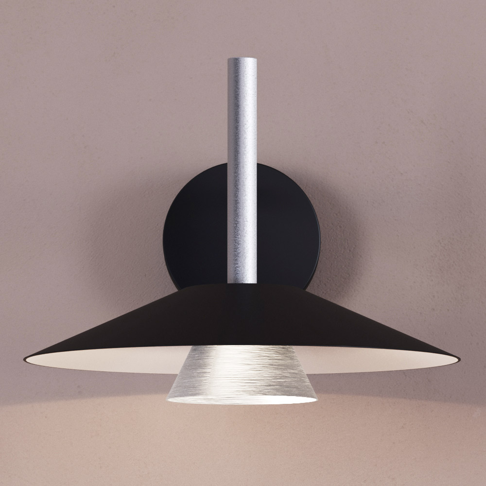 This lamp is a perfect fusion of contemporary design and industrial elegance , designed for those who love refined details and a bold aesthetic. The geometric structure, with a conical diffuser and large reflective disc, creates a fascinating play of volumes and contrasts , ensuring a directional and enveloping light.