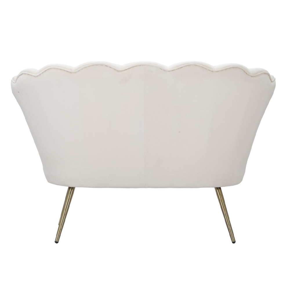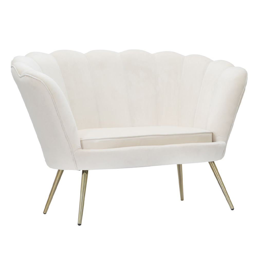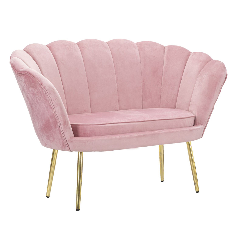 2 seater sofa with internal wooden structure padded in sponge with iron feet in gold finish and seat upholstered in velvet. Elegance and personality come together in a single product and give life to this wonderful sofa with a sophisticated soul . The rounded shape of the backrest ensures a welcoming and particularly comfortable seat . The combination of finishes chosen enriches the already refined aesthetics of the product with an exclusive and refined touch, ideal for furnishing living areas with a contemporary aesthetic taste and style.