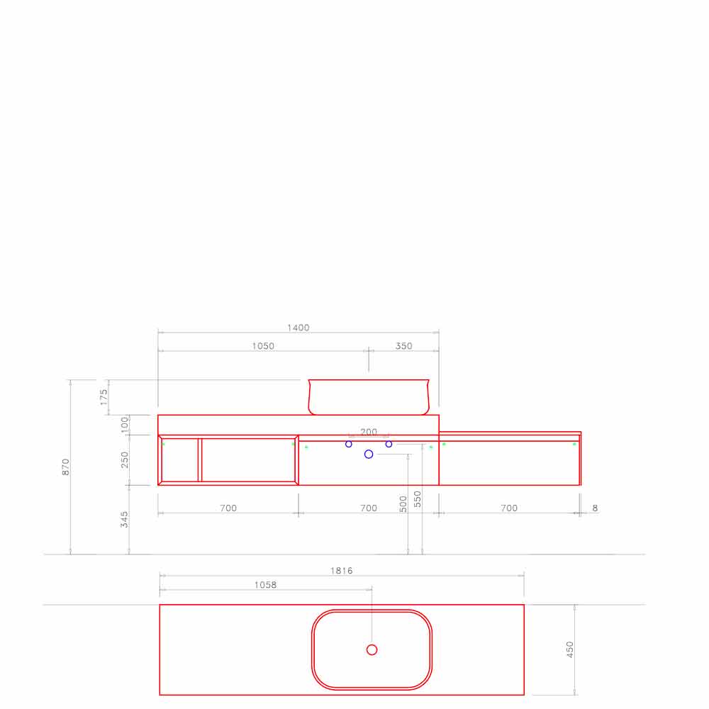 - countertop washbasin L.141 X P.45 X H. 8 cm