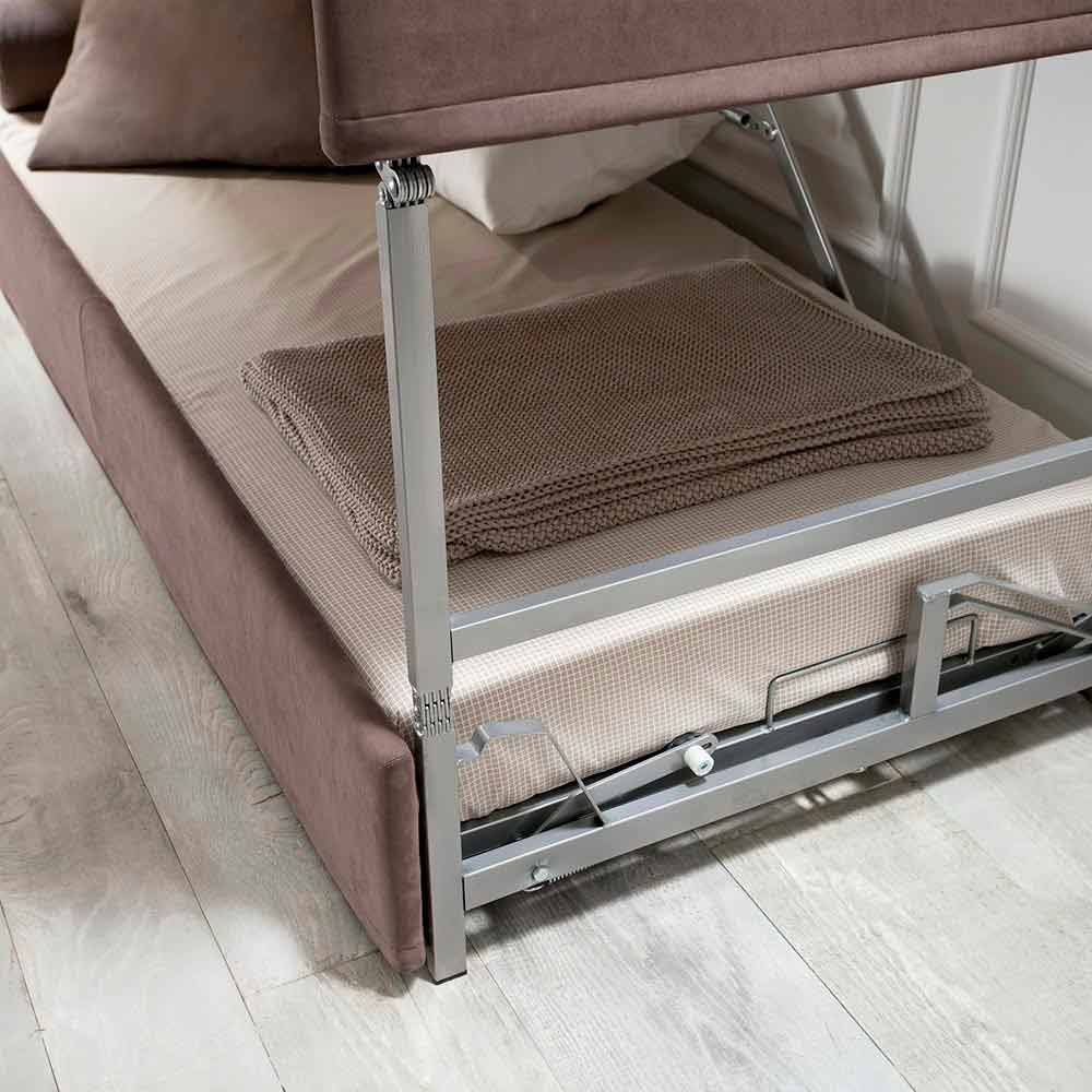 Bunk sofa bed covered in brown fabric with modern design Made in Italy.