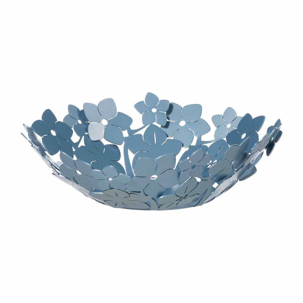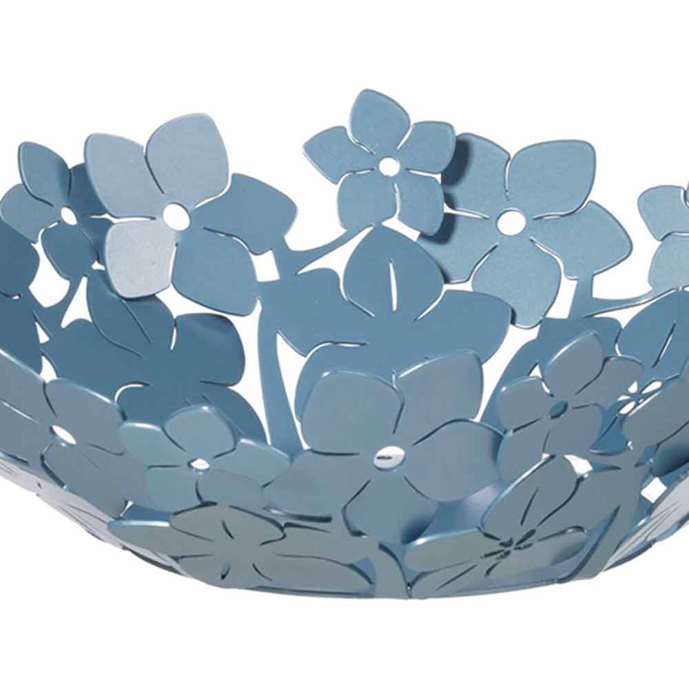 Centerpiece with modern style flowers, handcrafted in Italy in white iron, marble, light blue or mud.