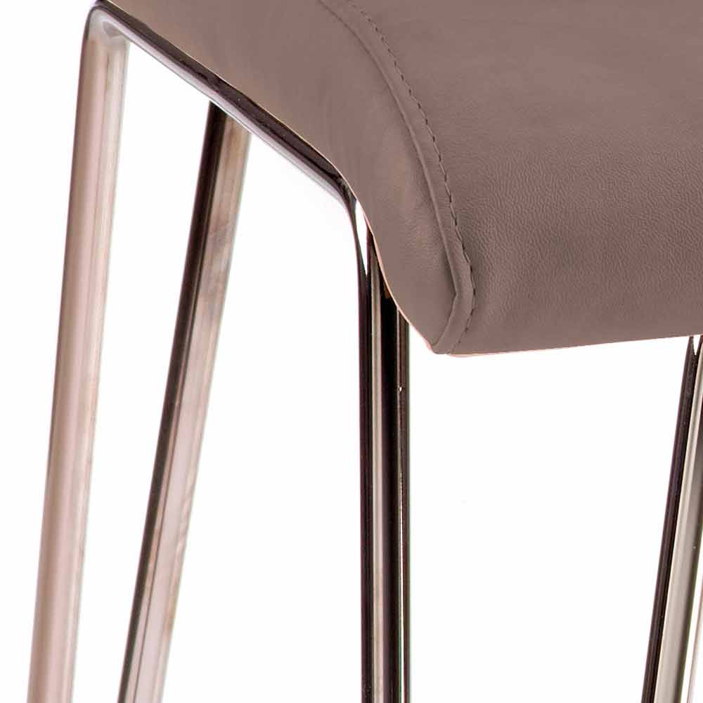 - legs in chromed finish and seat upholstered in brown leather (high quality material of first choice, bovine leathers of European origin)
