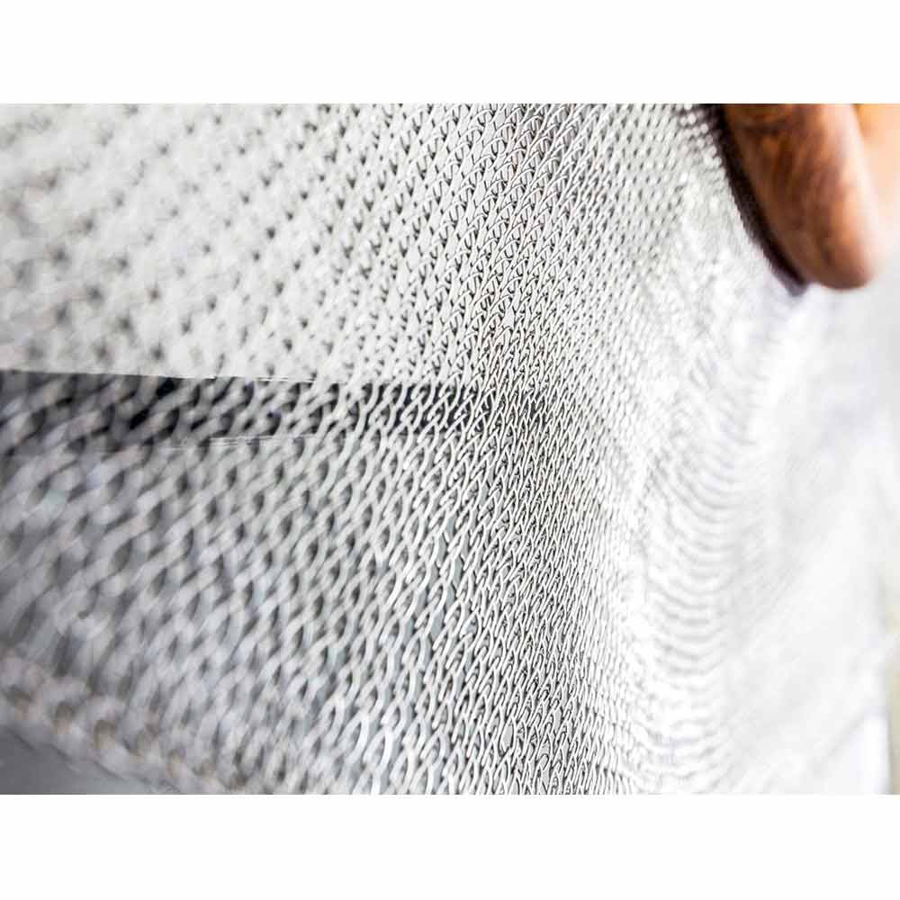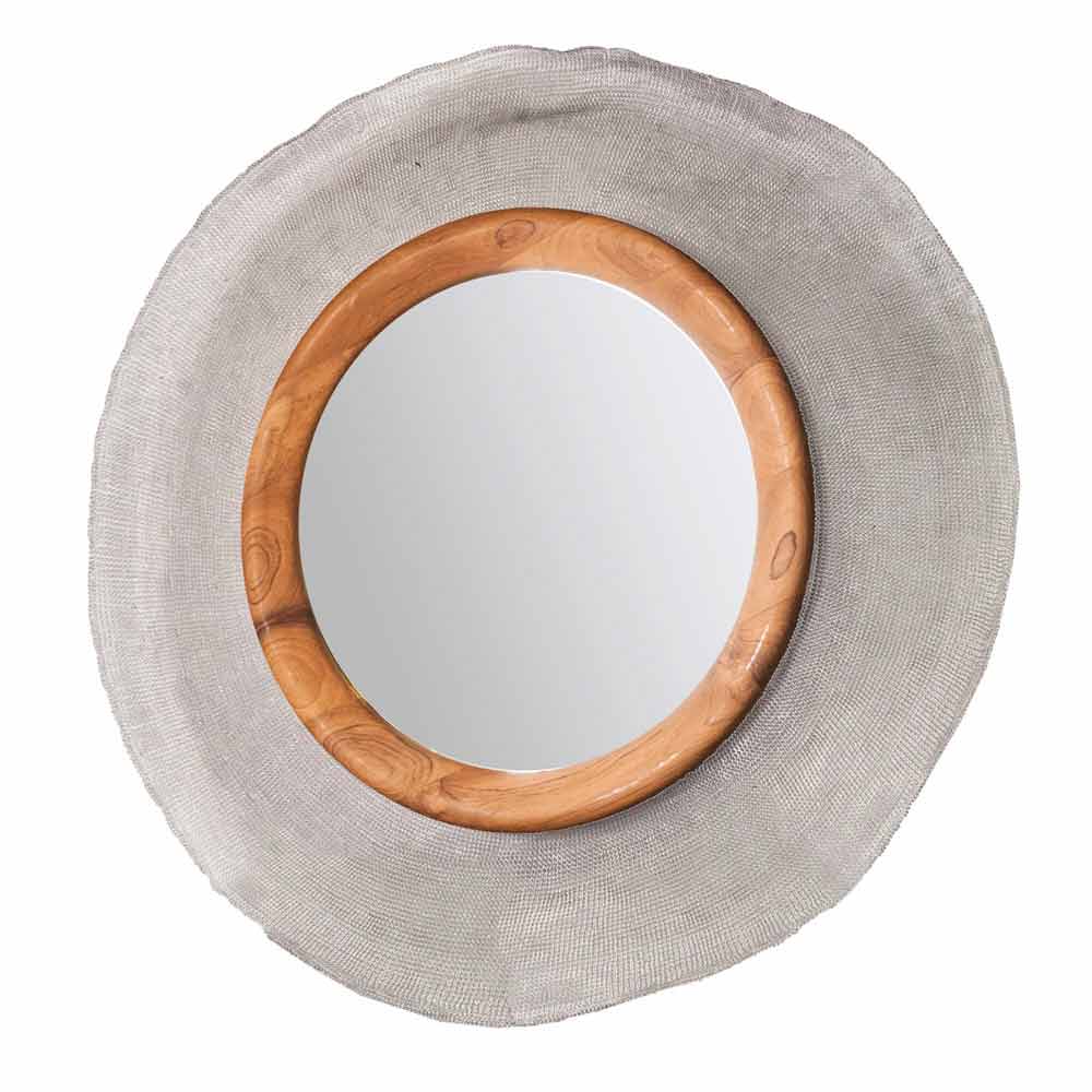 Made with a hand-woven metal mesh and applied along the polished teak frame of the mirror; the wire mesh can be shaped according to your pleasure. Thanks to its innovative, elegant and refined design, it can be placed in any environment from the living area to the sleeping area; from the office to the bathroom.