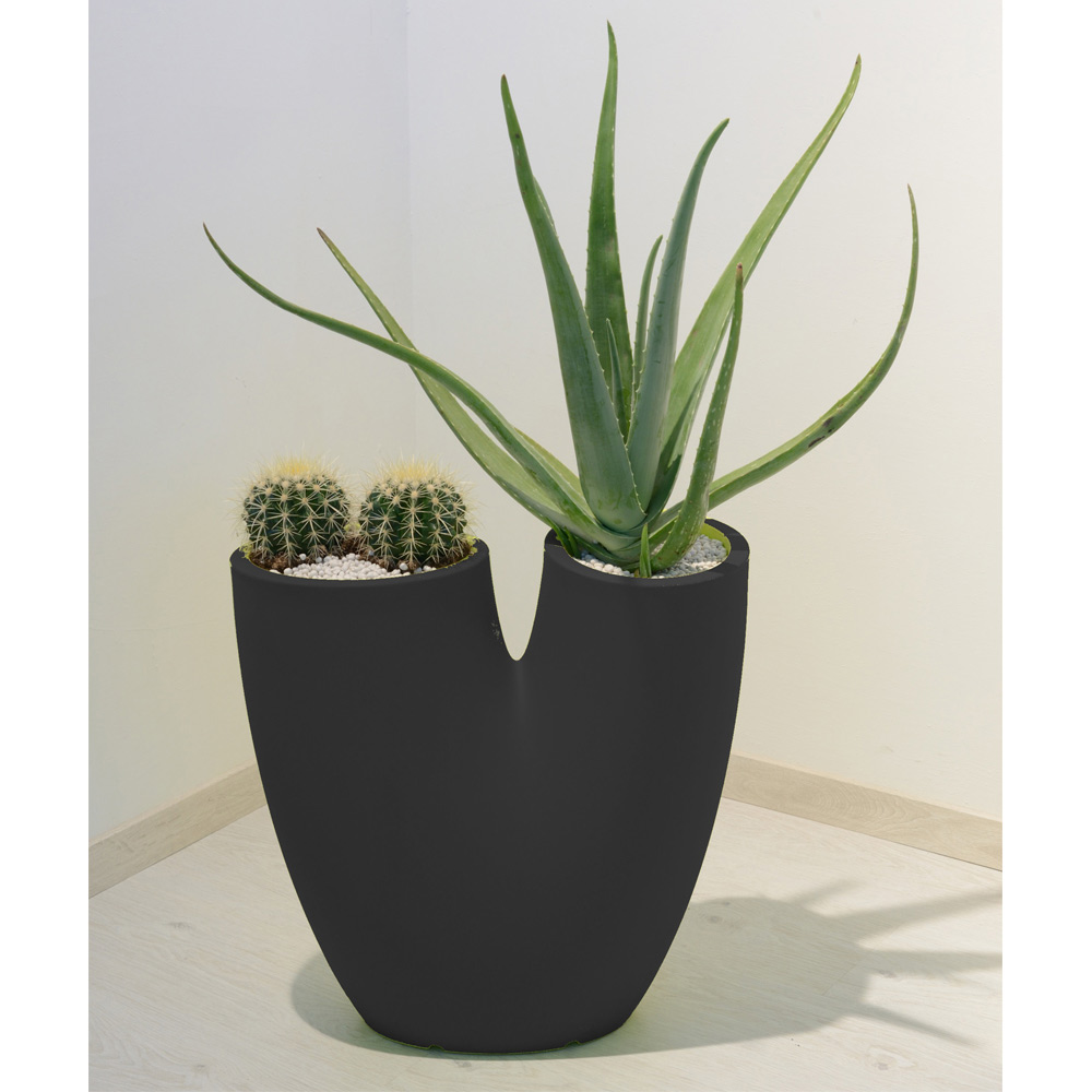 Flowes is a modern vase with a slender and captivating design, designed to place two types of different plants in a single vase thanks to the two existing holes. It can be used both as a vase and as a vase holder. Available in different colors, it is best suited to both outdoor and indoor environments.
