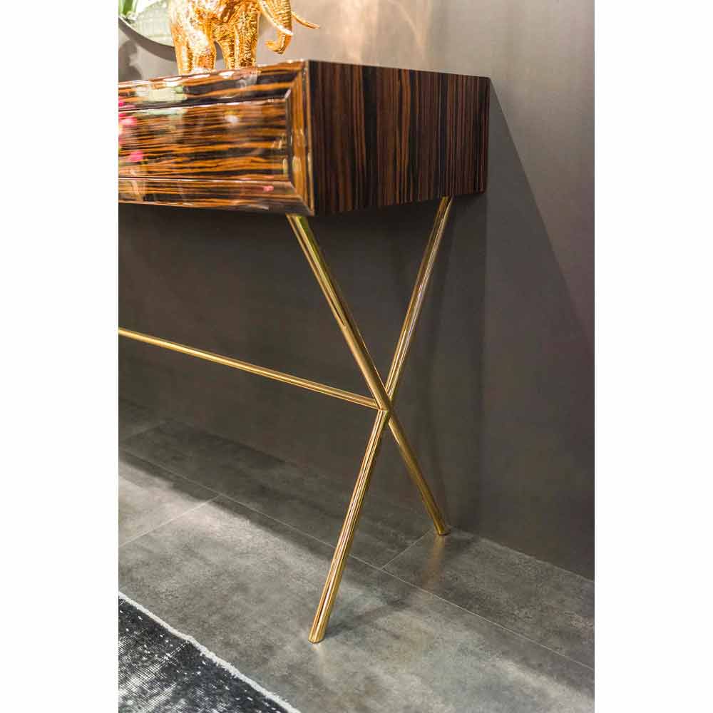 The table frame is in glossy 24k gold galvanized metal. Ada 4 console table is also available in the white mother-of-pearl version: ask for a quotation at info@viadurini.co.uk.