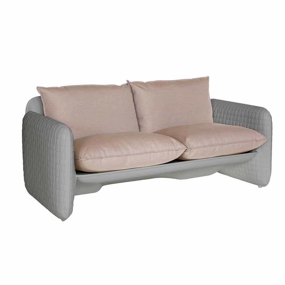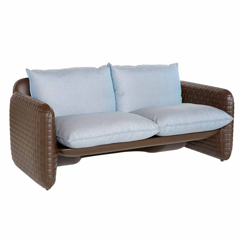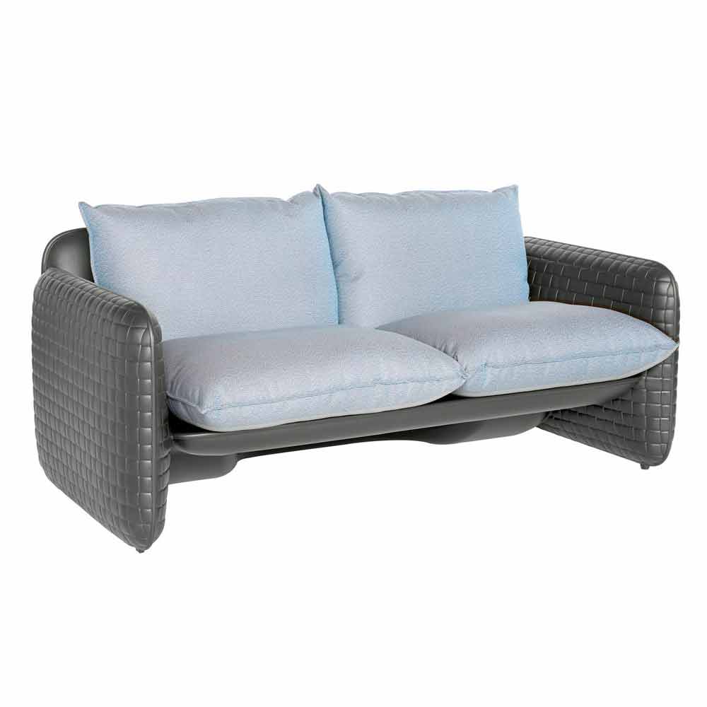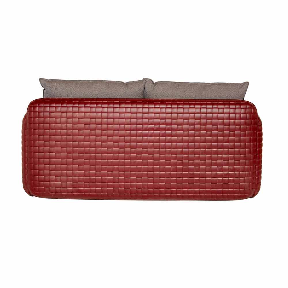 The MARA two-seater sofa , design by Lorenza Bozzoli, is a made in Italy product . Its unique texture covers the entire structure, inspired by the artisanal weaving of leather. The cushions give absolute comfort to the seat: waterproof and interchangeable , moreover, it makes them perfect for the outdoors. Mara is a collection completed by the armchair and the pouf.
