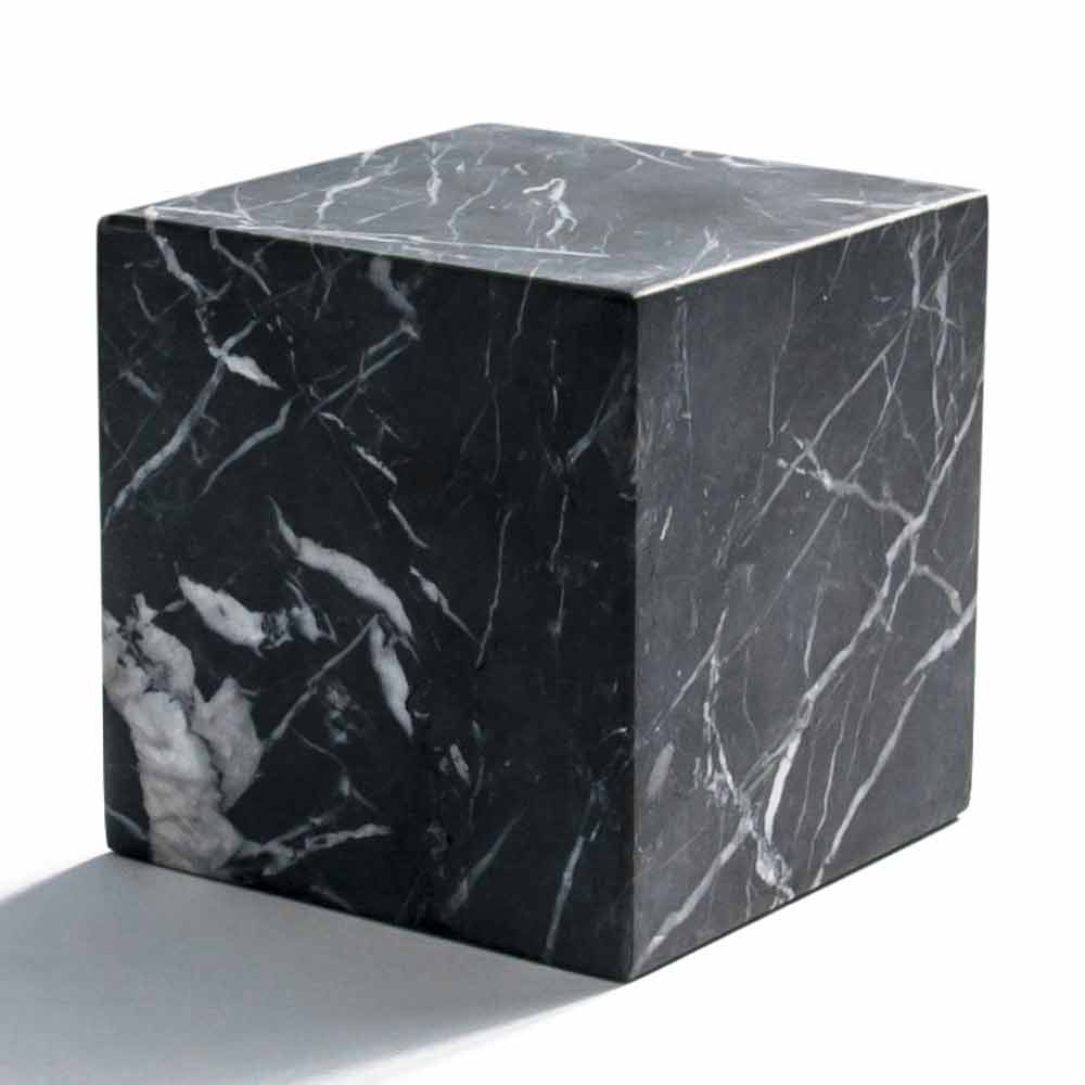 Small cube paperweight made of black Marquinia marble . It is a unique piece as each block of marble used differs from the others for veins and shades.