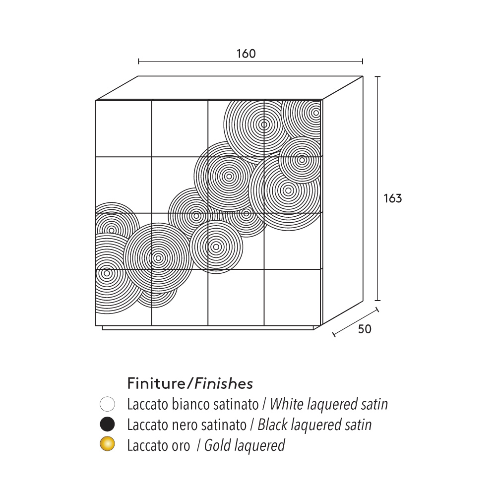 Modern design 8-door sideboard Ardesia, white, black or gold Sideboard with 8 decorated doors with 4 internal shelves in lacquered MDF, made in Italy. Available in white, black or gold satin lacquered colours.