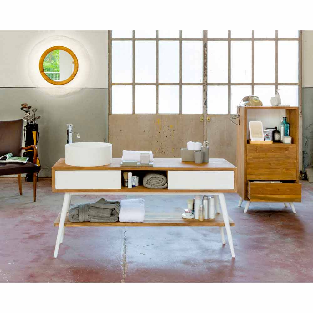 Modern design bathroom console table in natural Pistoia teak