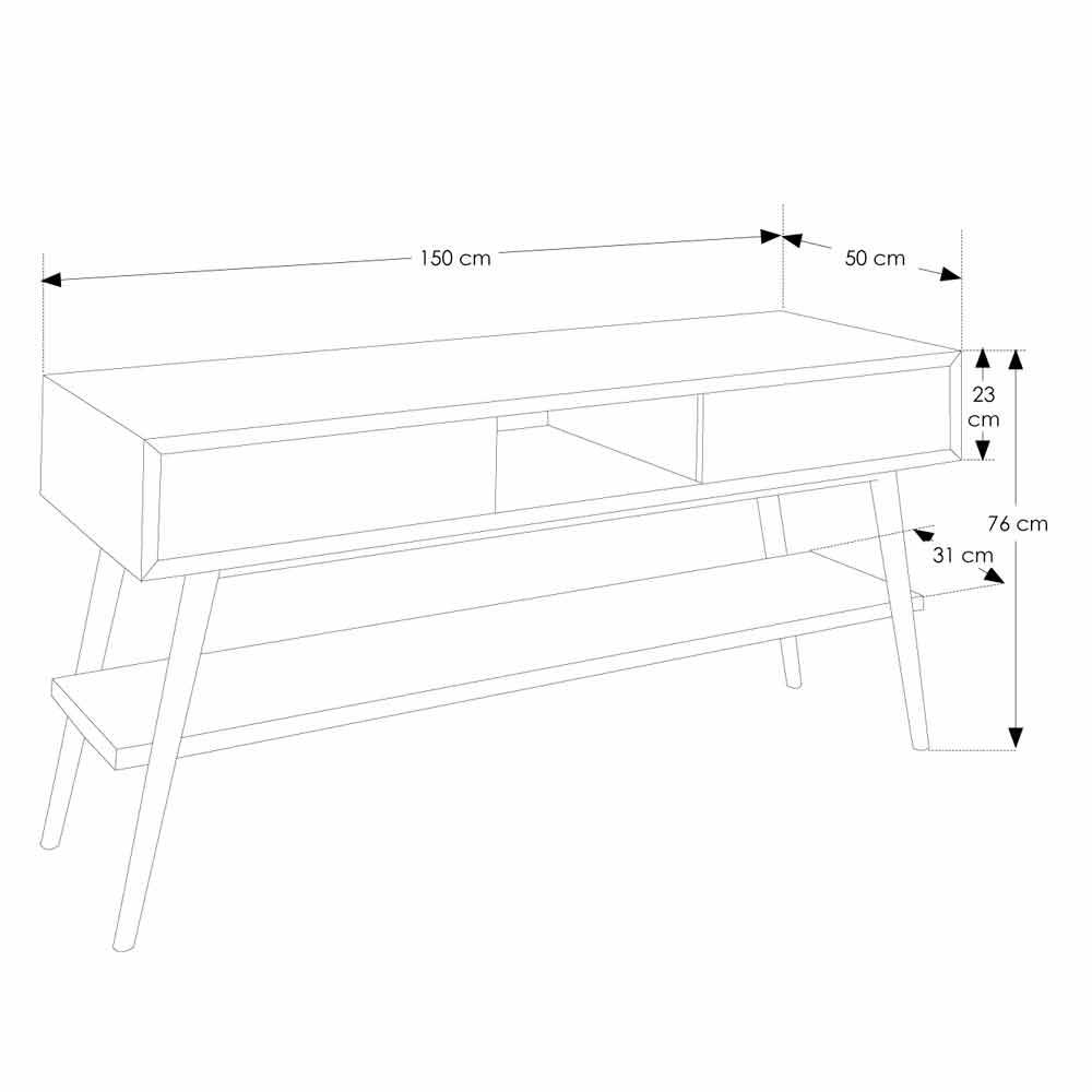 Made of hand-waxed natural teak, with legs and two push / pull drawers in white wood.