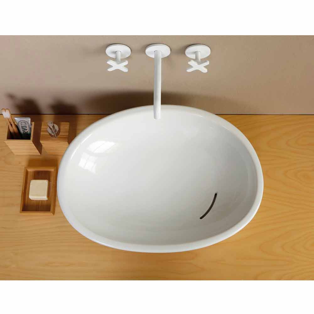 Glossy ceramic design tilted countertop washbasin made in Italy Inclined washbasin, with a soft and elongated shape, characterized by a continuous water flow drain.