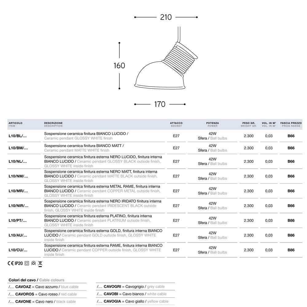 Modern design ceramic pendant lamp I Lustri 10 by Aldo Bernardi