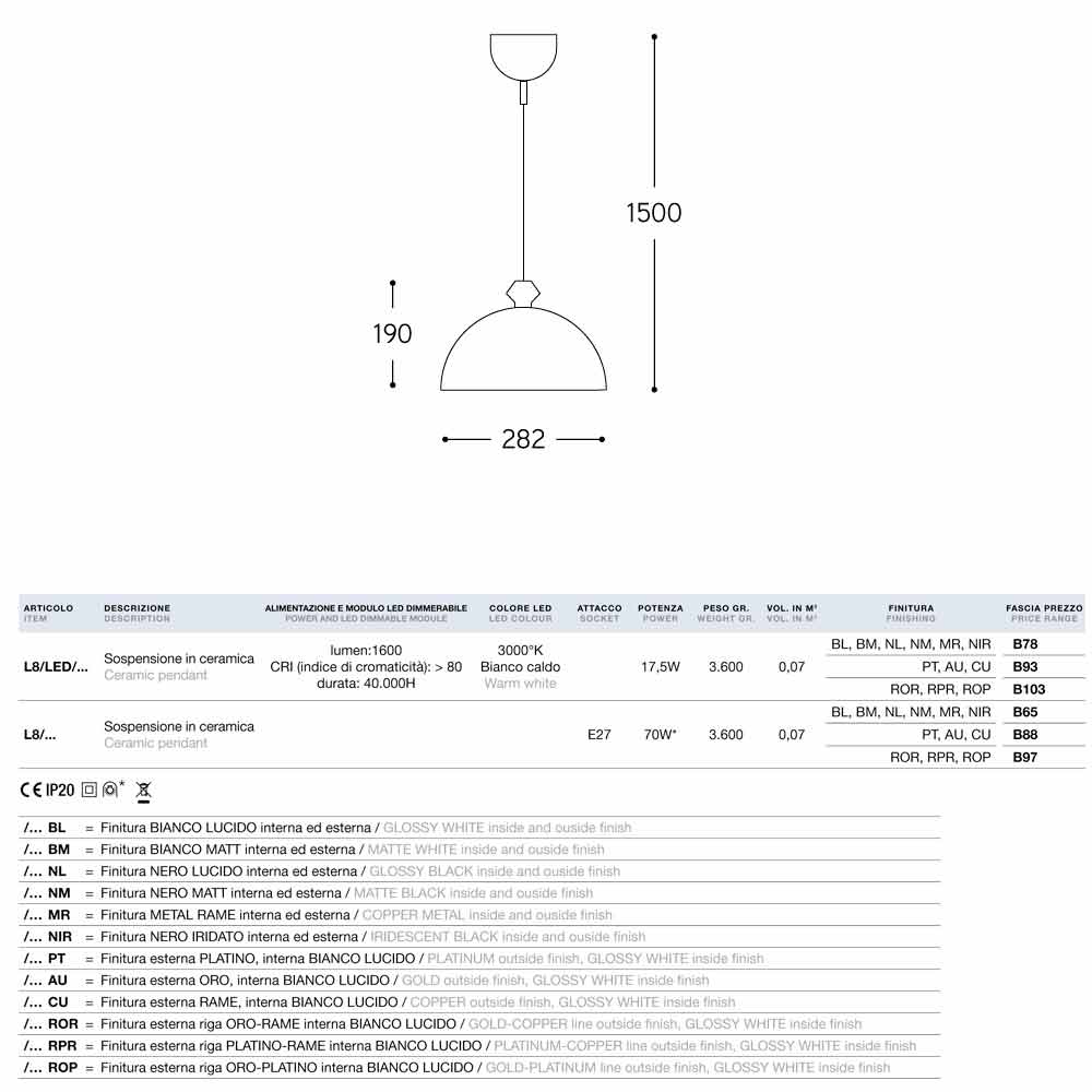 < Modern design ceramic pendant light ILustri8 by AldoBernardi. I Lustri 8 is available with different finishings and with standard E27 light bulb socket or LED light.