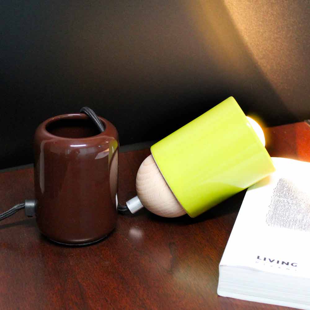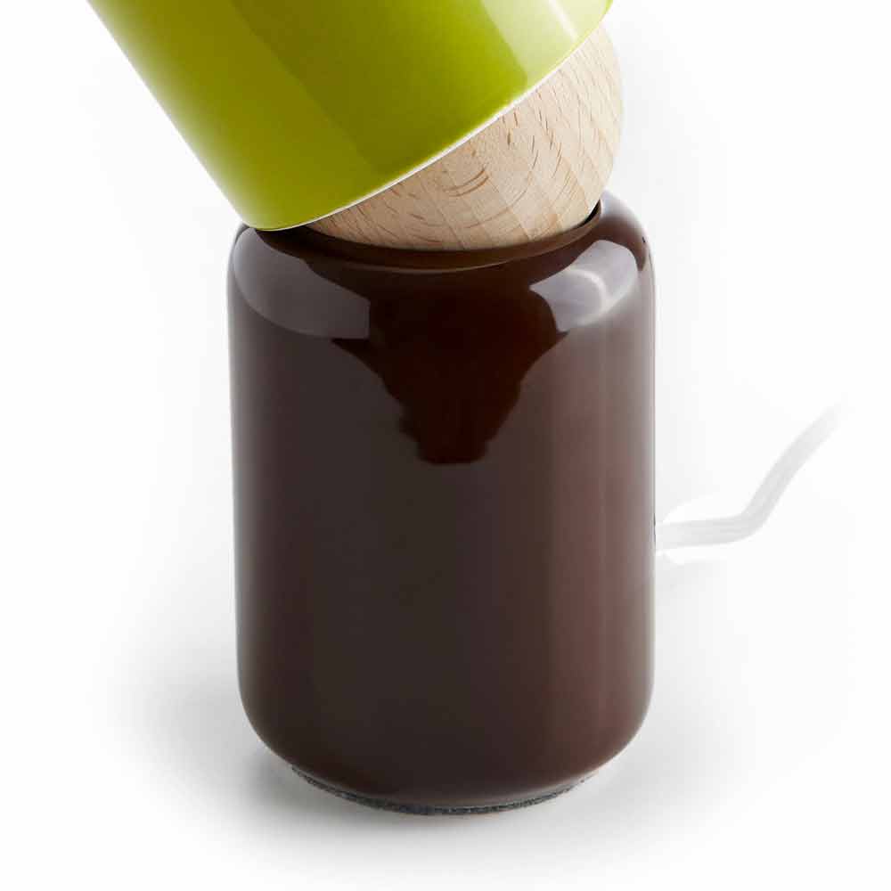 Produced exclusively in Italy in brown and green ceramic and beech wood, its cable is black and the cable clamp is in aluminum.