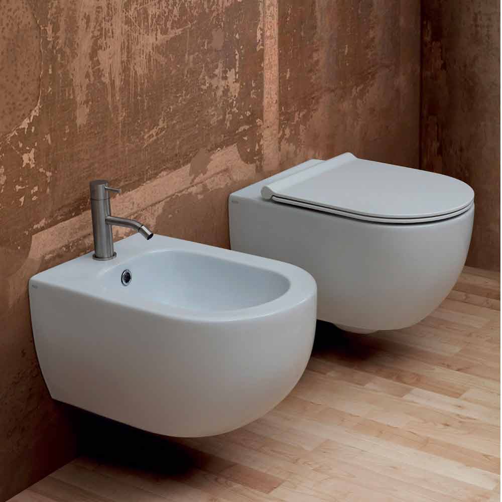 Modern design ceramic wall hung bidet 55x35cm, Star, made in Italy