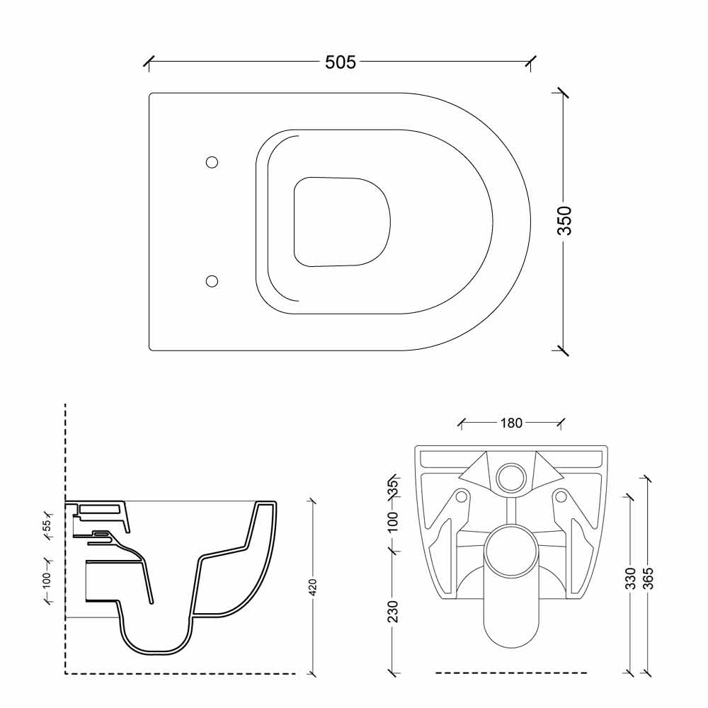 Suspended ceramic toilet with quick fixing kit and fixing brackets included.