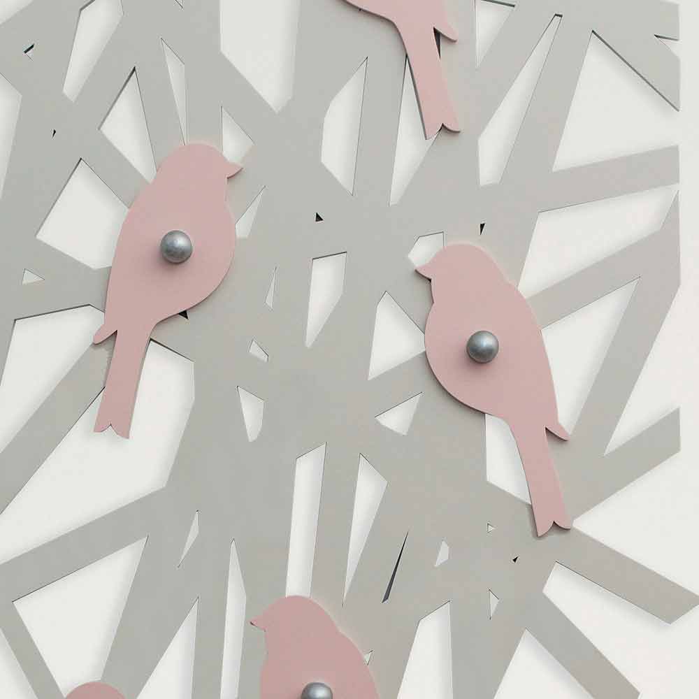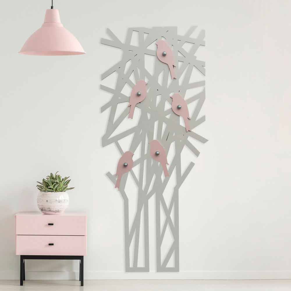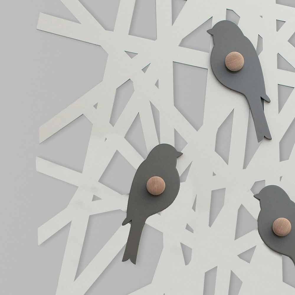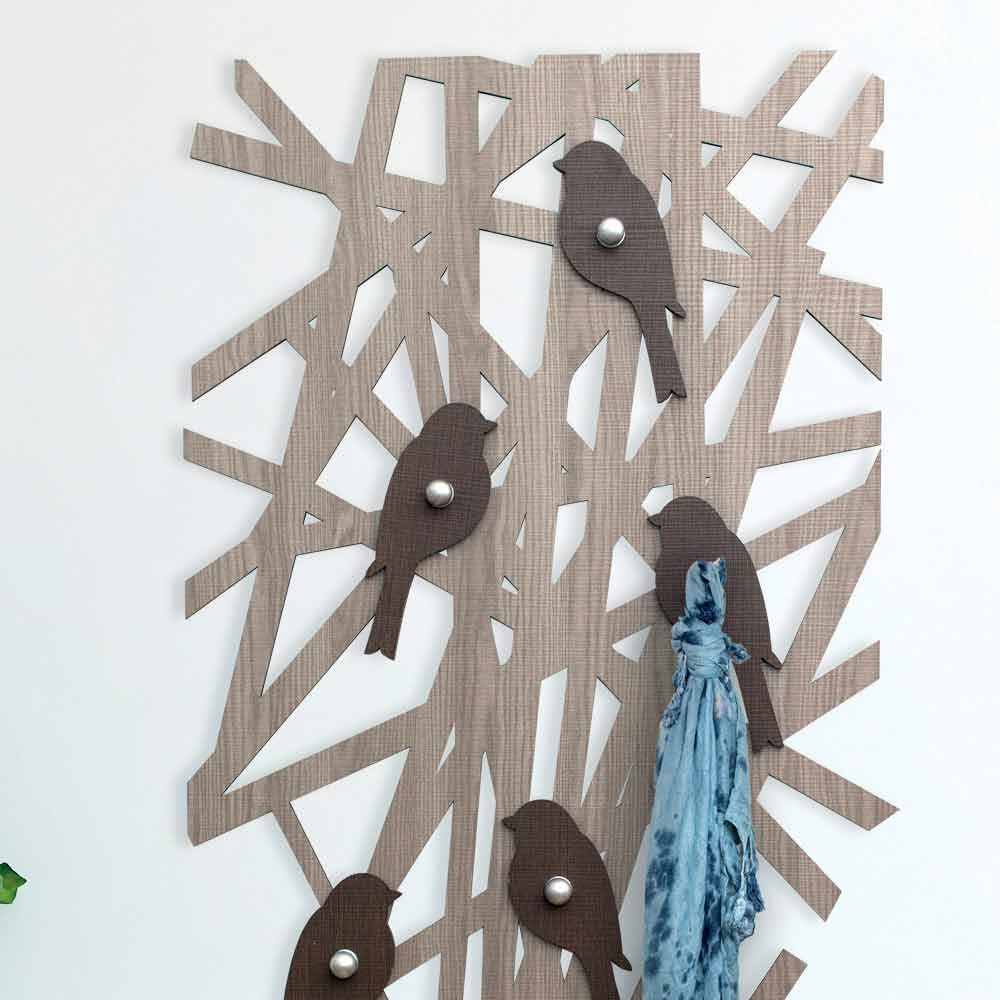 Wall hanger for entrance hall, modern design in the shape of a stylized tree with birds, made in Italy.
