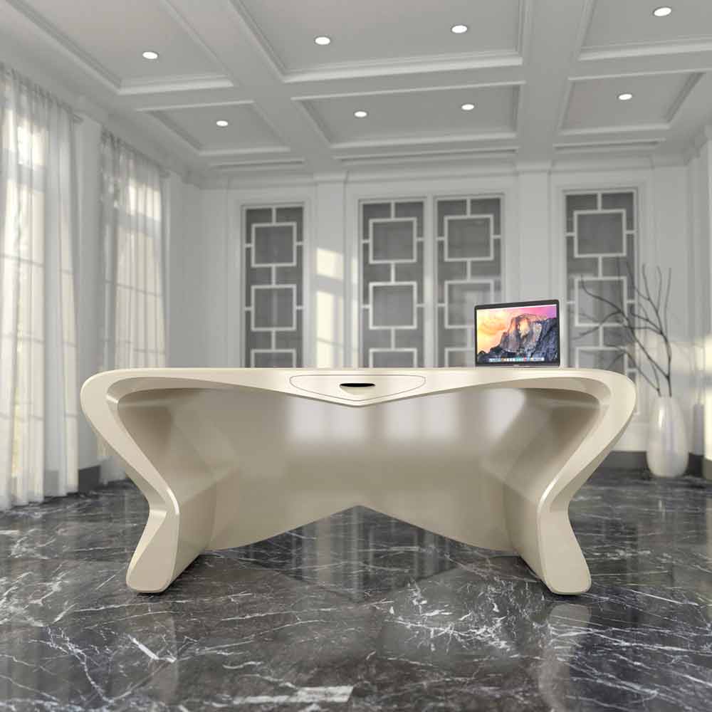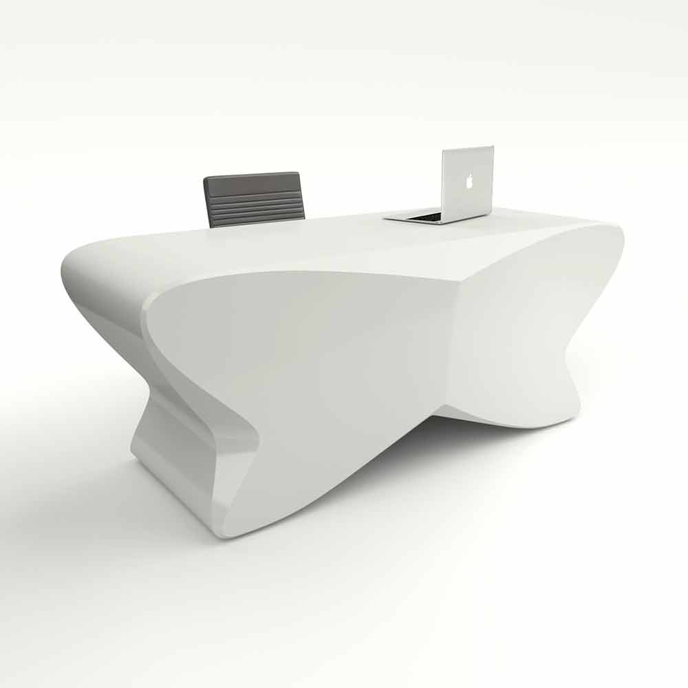 Office desk of modern design made in Italy, Popoli Popoli is a fantastic study desk made of Solid Surface® and inspired by the shapes of a butterfly. Thanks to its light and modern design and its majestic shapes, it will be perfect for furnishing all your contract environments with joy and innovation.