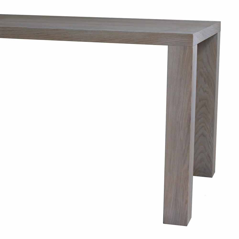 The fixed table Loran expresses the synthesis of the traditional components of a table; the type of processes applied and the material enhance its essential lines. The 5cm thick top is in brushed solid oak with the particularity of giving an extraordinary table effect without the risk of deformation and cracking typical of solid wood; the legs, also in solid brushed oak, are built using the folding technique, which allows to obtain a single piece without visible joints.