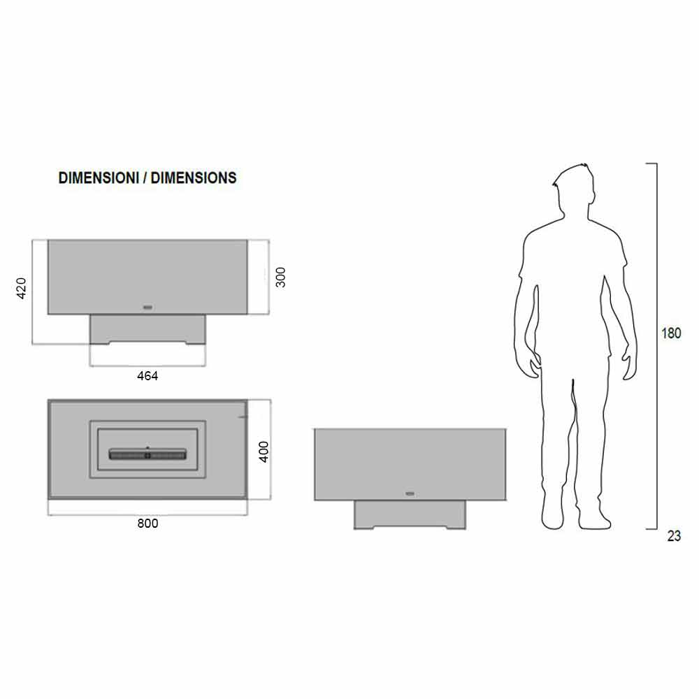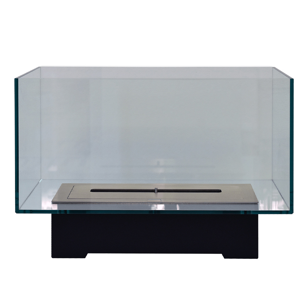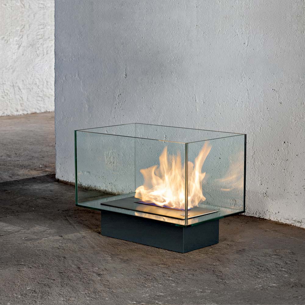 Its particular and suggestive design, in fact, consists of a transparent rectangular glass space that contains the flame, creating a sort of continuity with the surrounding environment and becoming the protagonist thanks to the small base that highlights the heat of the fire, from enjoy in total relaxation and safety.