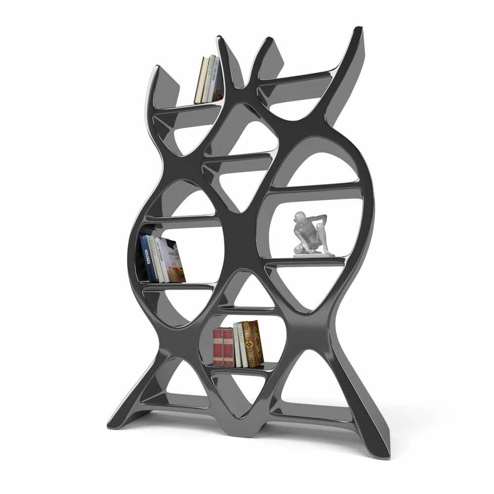 Beyond the bookcase, a sculpture inspired by DNA, a source of life and knowledge. The soft and sinuous lines, combined with a strong scenic impact, make the DNA bookcase suitable as an exclusive piece of furniture within the home. Its out-of-the-ordinary shapes also make it ideal for environments dedicated to literary bars or coffee libraries. Solid Surface structure, available in different colors: Black (RAL9005), Ruby red (RAL3003) or Pearl white (RAL1013).
