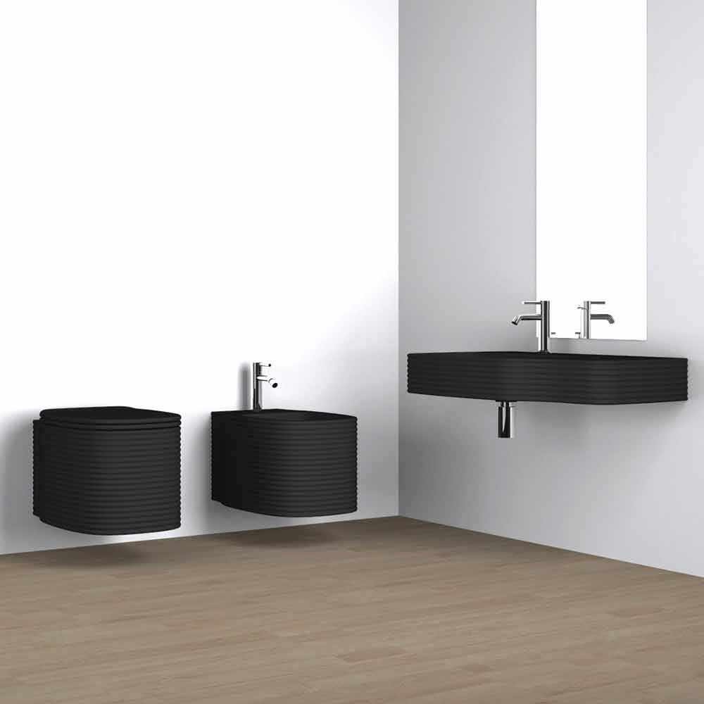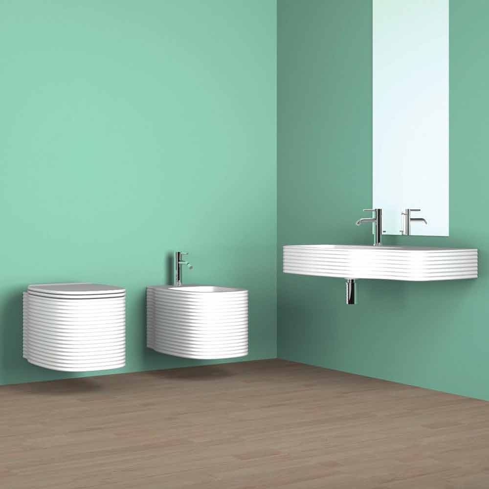 Modern design hanging bidet in pottery made in Italy, Amleto